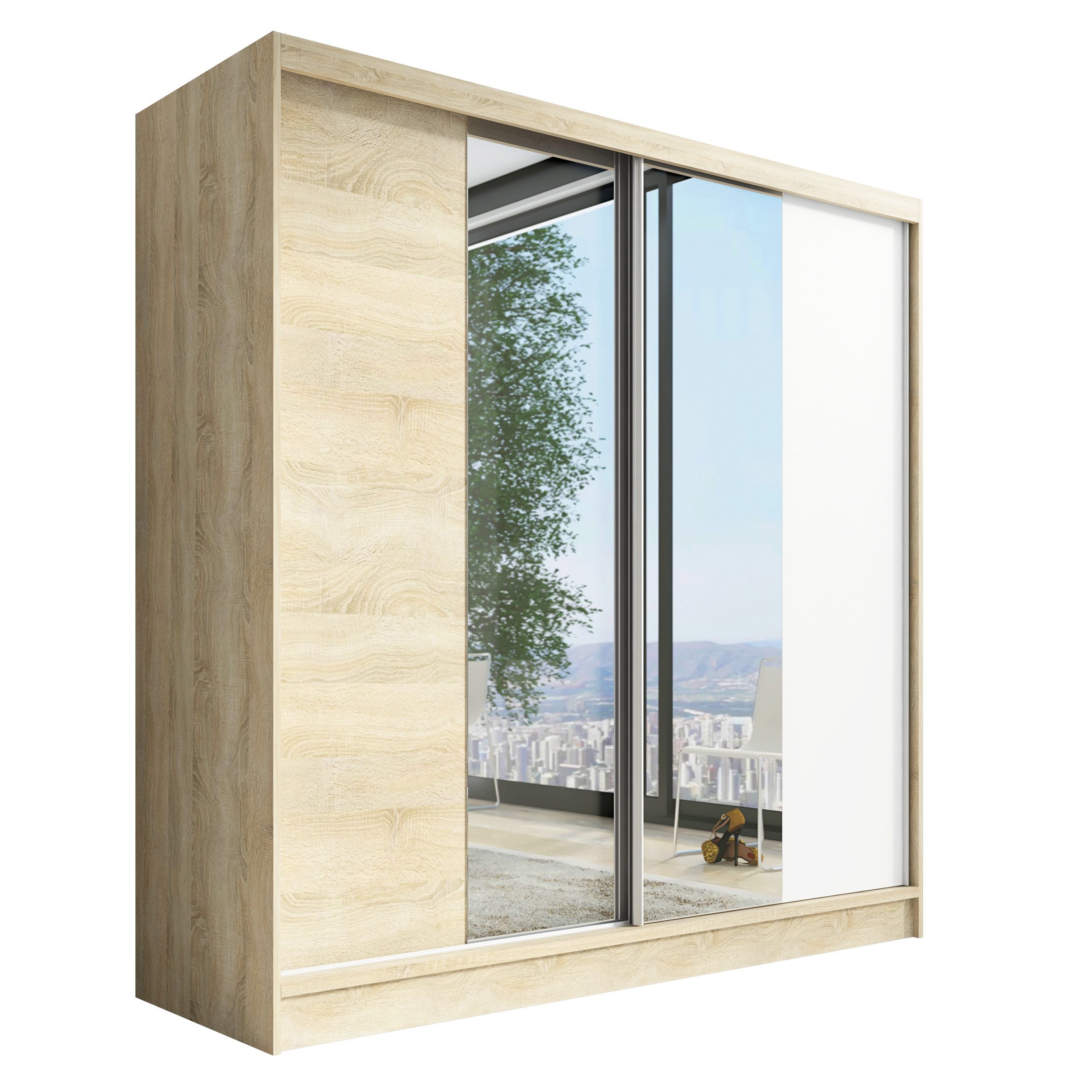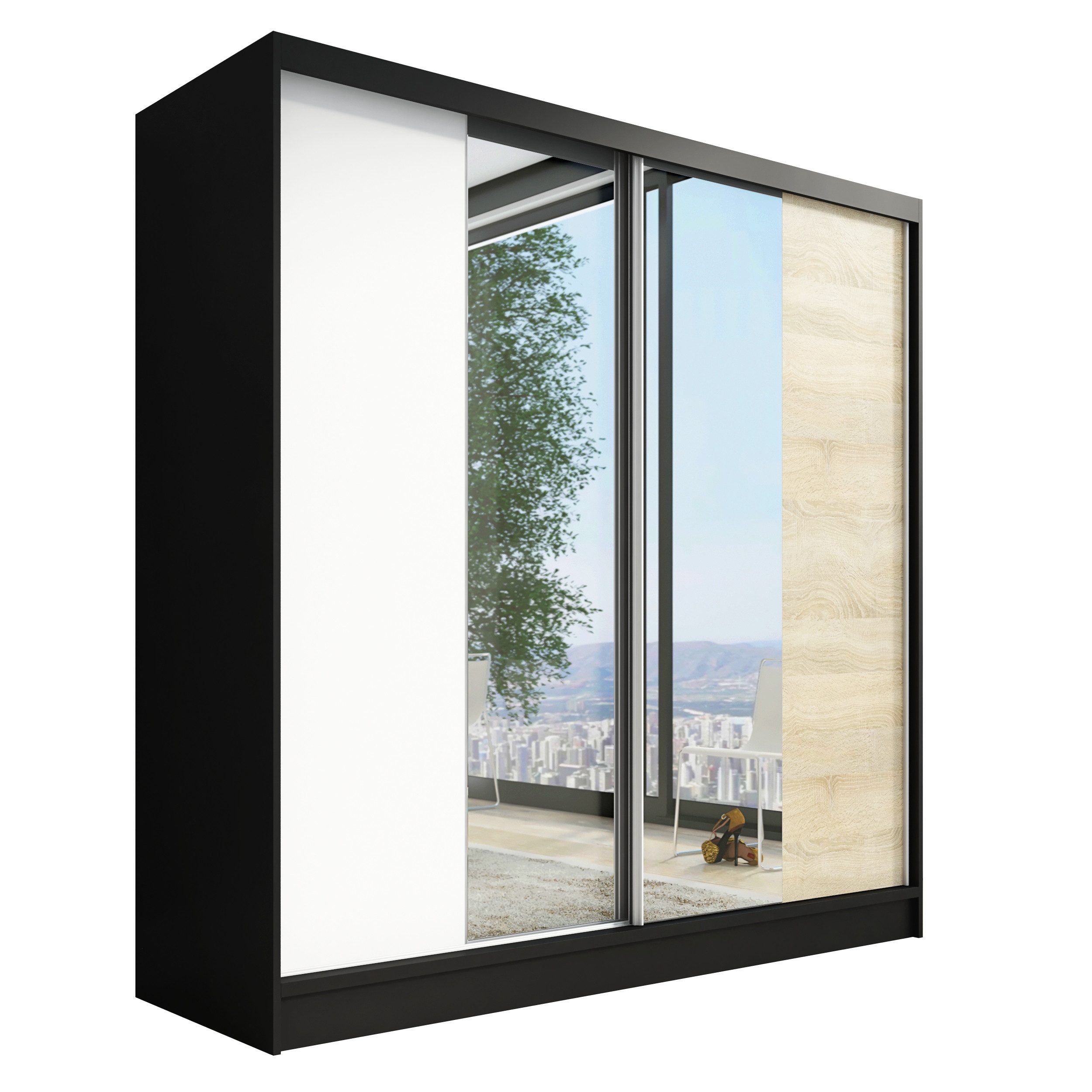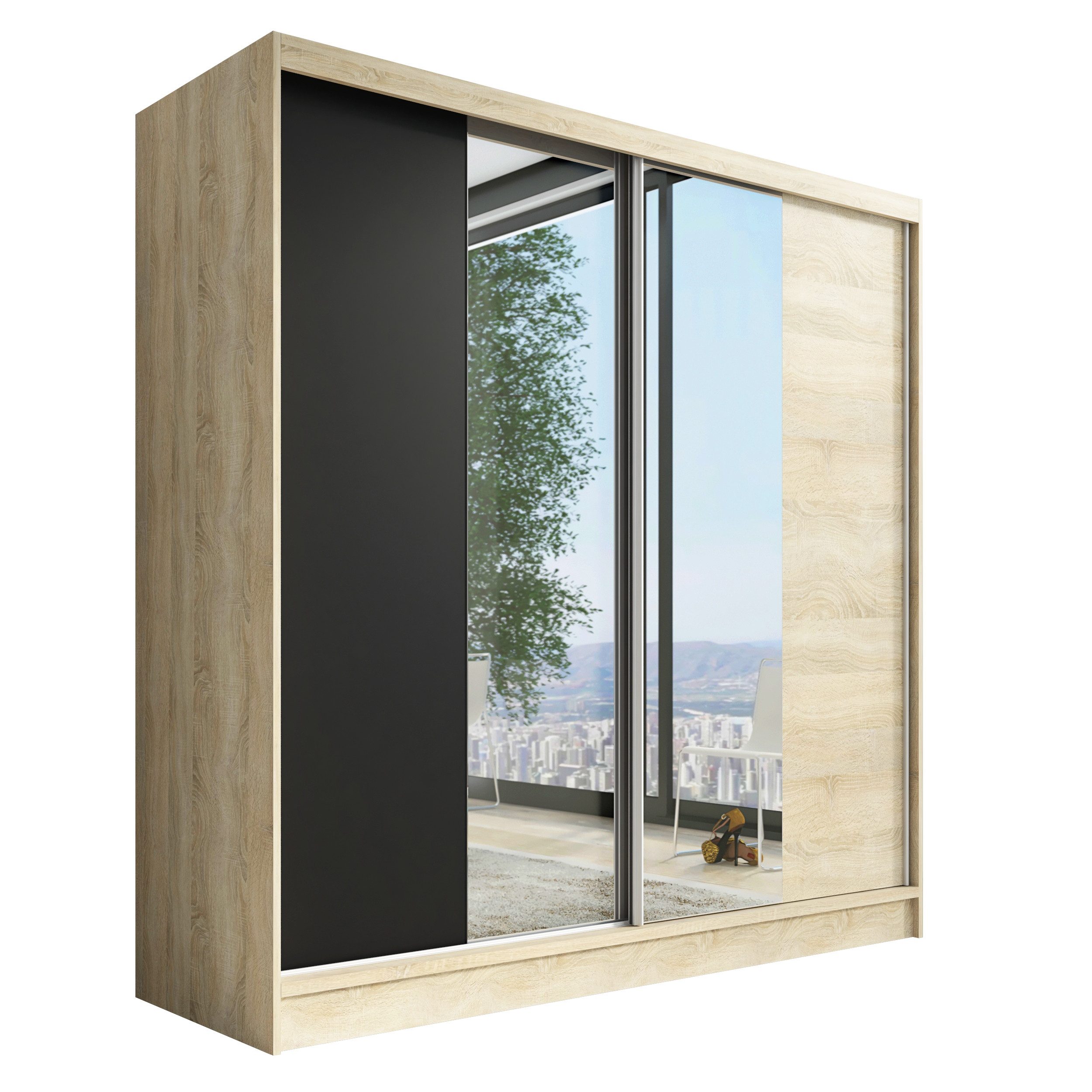 • Verschiedene Größen: Der Schrank ist in drei verschiedenen Breiten (200 cm) erhältlich, sodass Sie die perfekte Розмір für Ihr Schlafzimmer oder Ihren Raum wählen können.