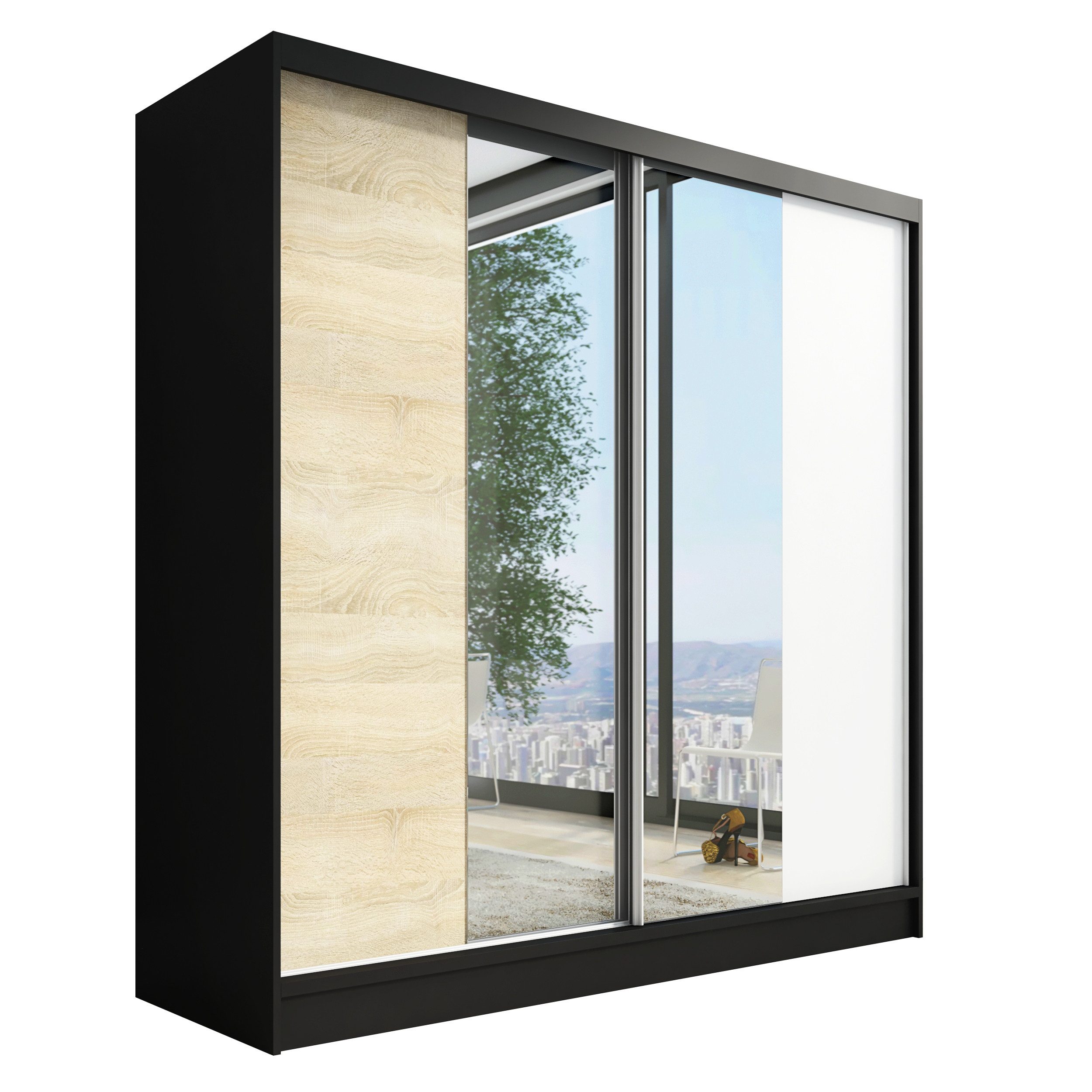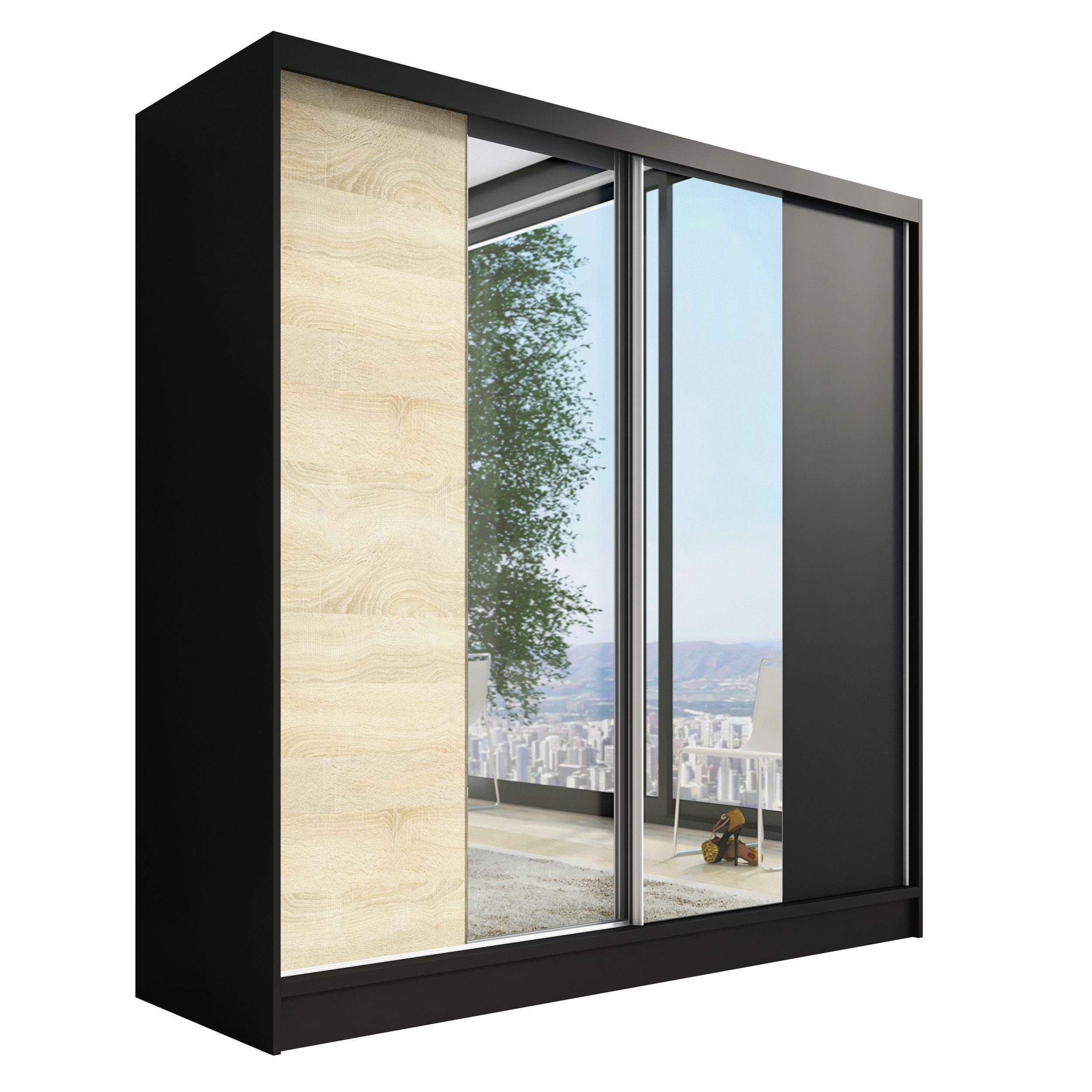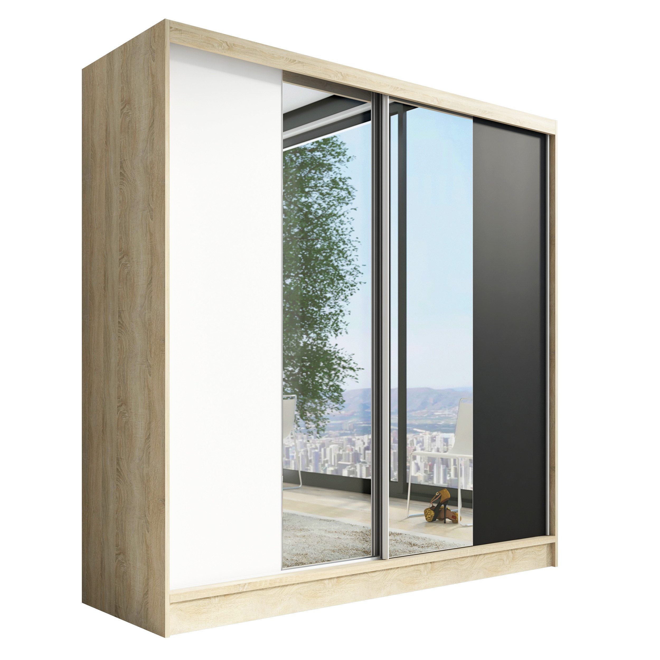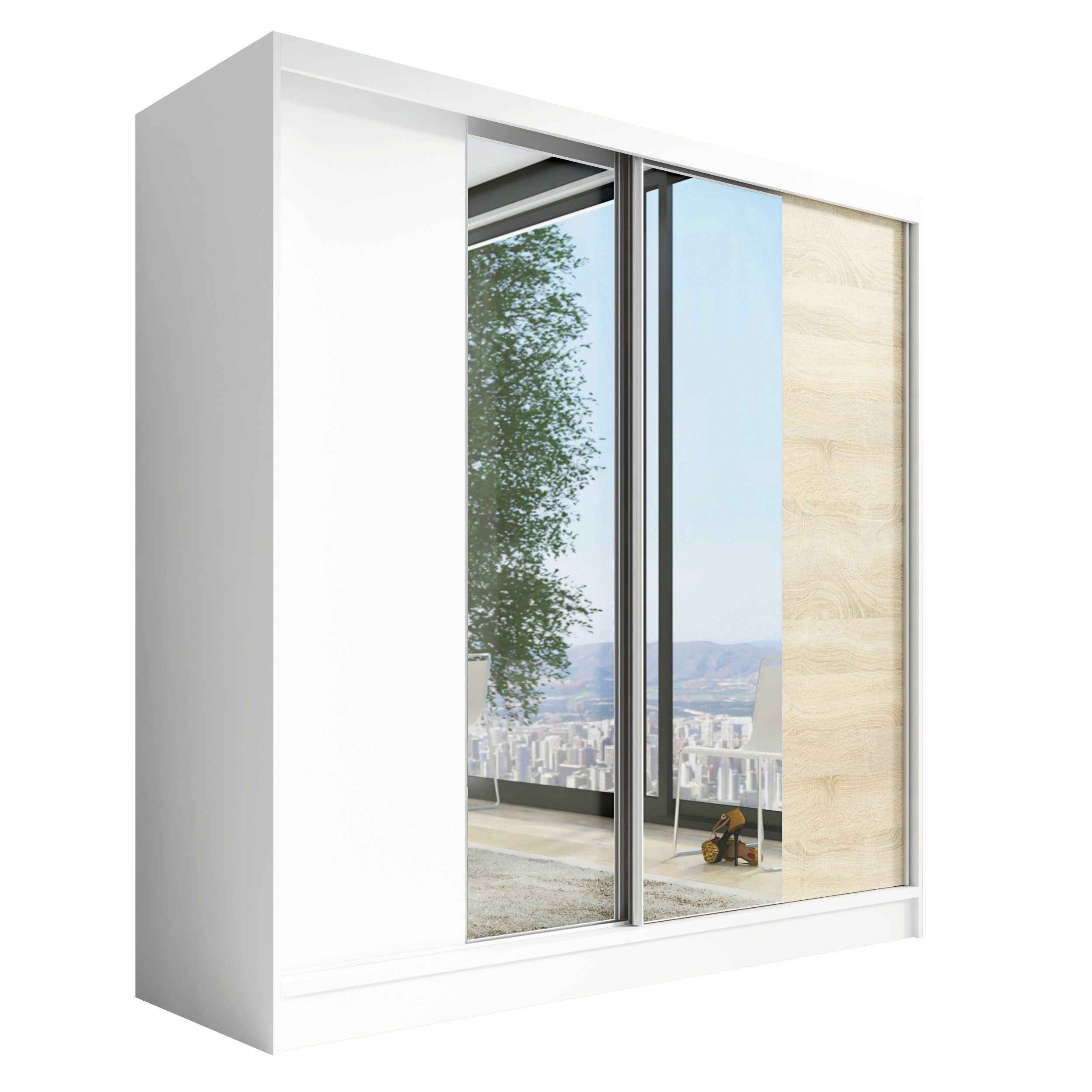 • Verschiedene Größen: Der Schrank ist in drei verschiedenen Breiten (200 cm) erhältlich, sodass Sie die perfekte Розмір für Ihr Schlafzimmer oder Ihren Raum wählen können.