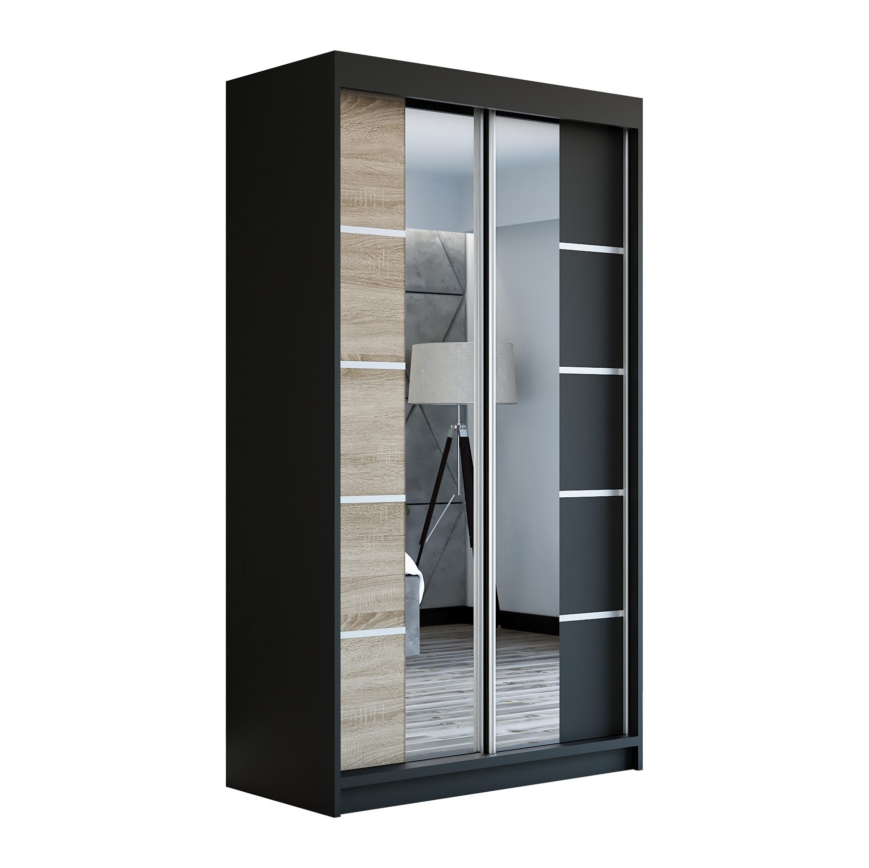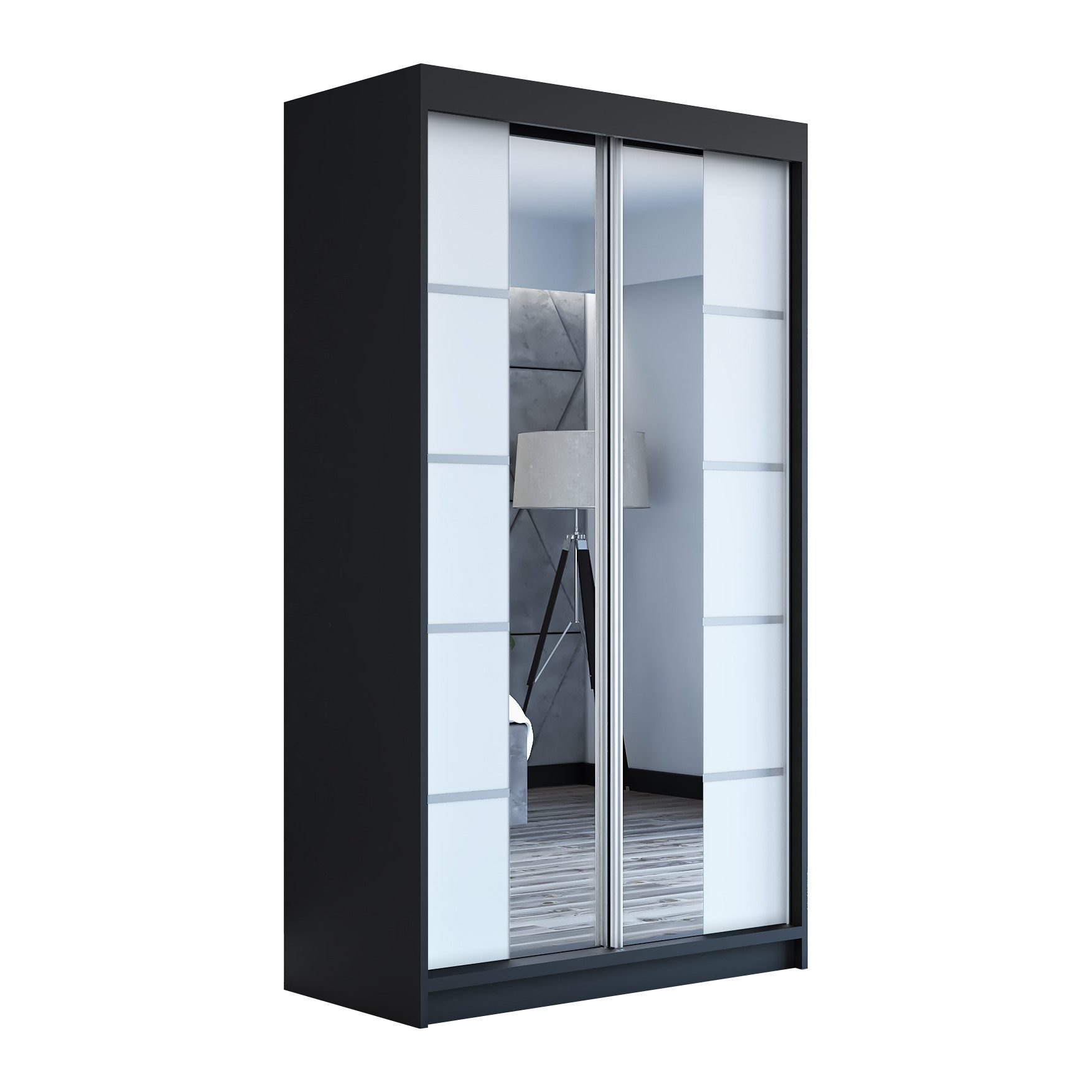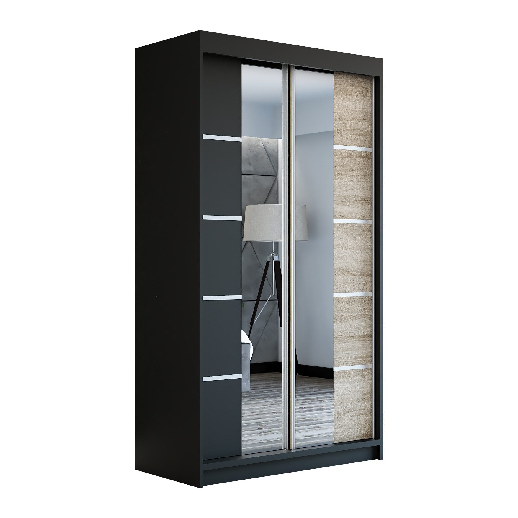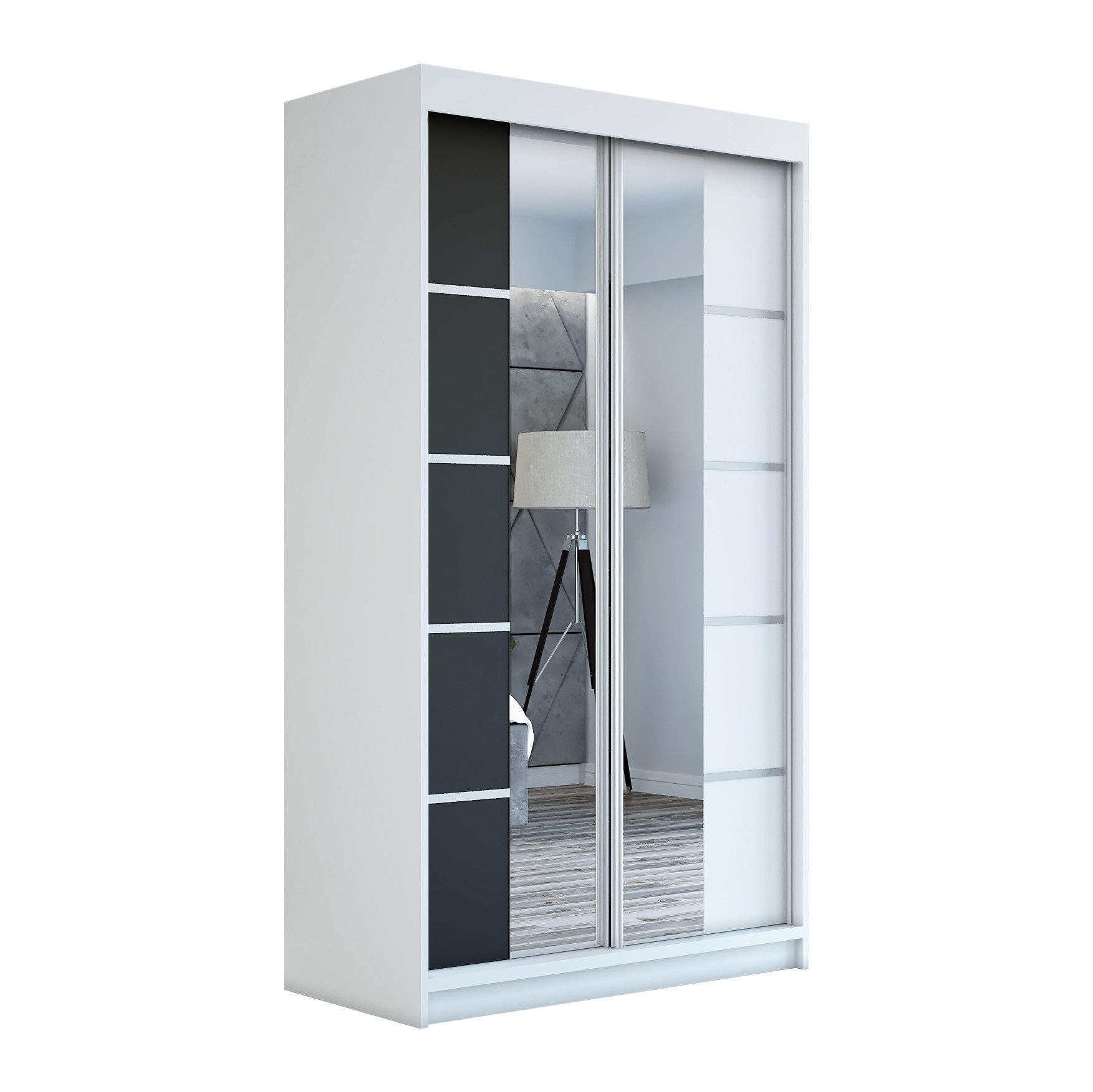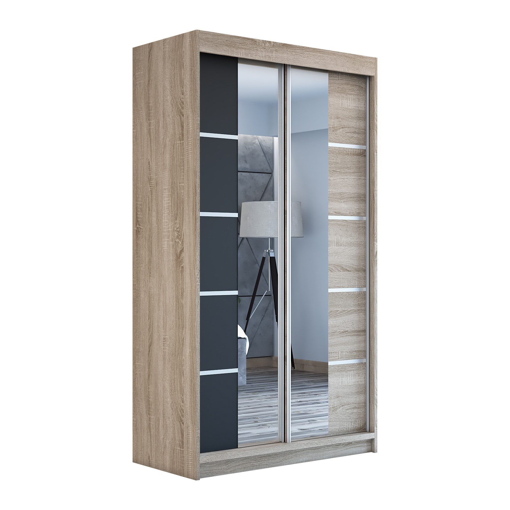 Der moderne 2-türige Kleiderschrank mit zwei Spiegeln ist die ideale Lösung für jedes Zuhause, das elegantes Design mit praktischer Funktionalität kombiniert. Der Schrank ist in drei verschiedenen Größen erhältlich (120 cm, 140 cm, 180 cm) sodass Sie das Modell auswählen können, das perfekt in Ihr Zimmer passt. Mit einer praktischen Kleiderstange und sechs Regalen bietet der Schrank ausreichend Platz für Ihre Kleidung und Accessoires. Die beiden Spiegel sorgen für praktische und stilvolle Ergänzungen, die den Raum optisch vergrößern.