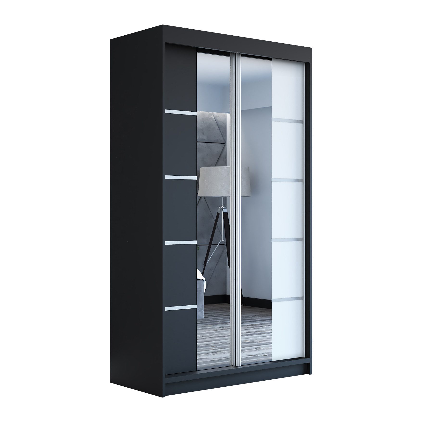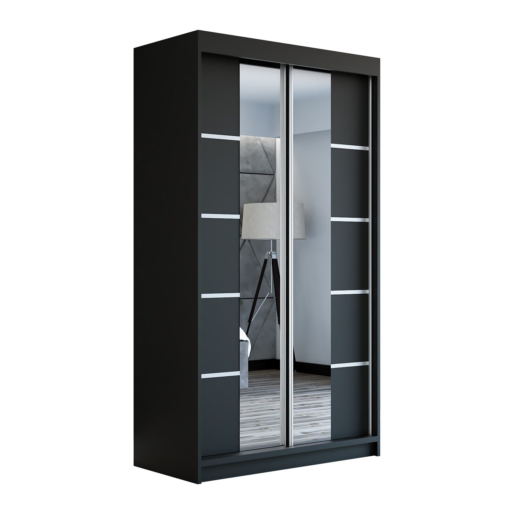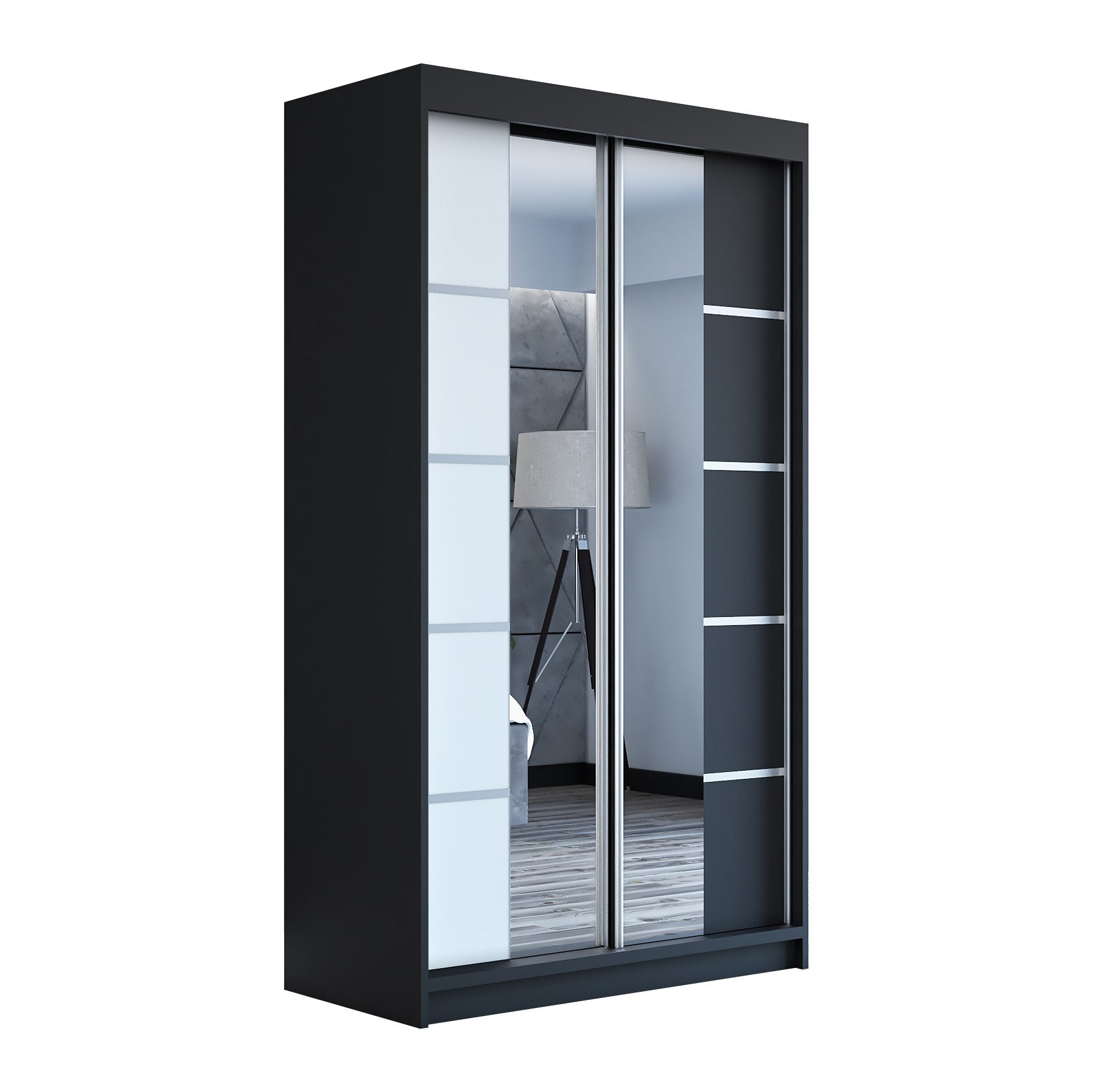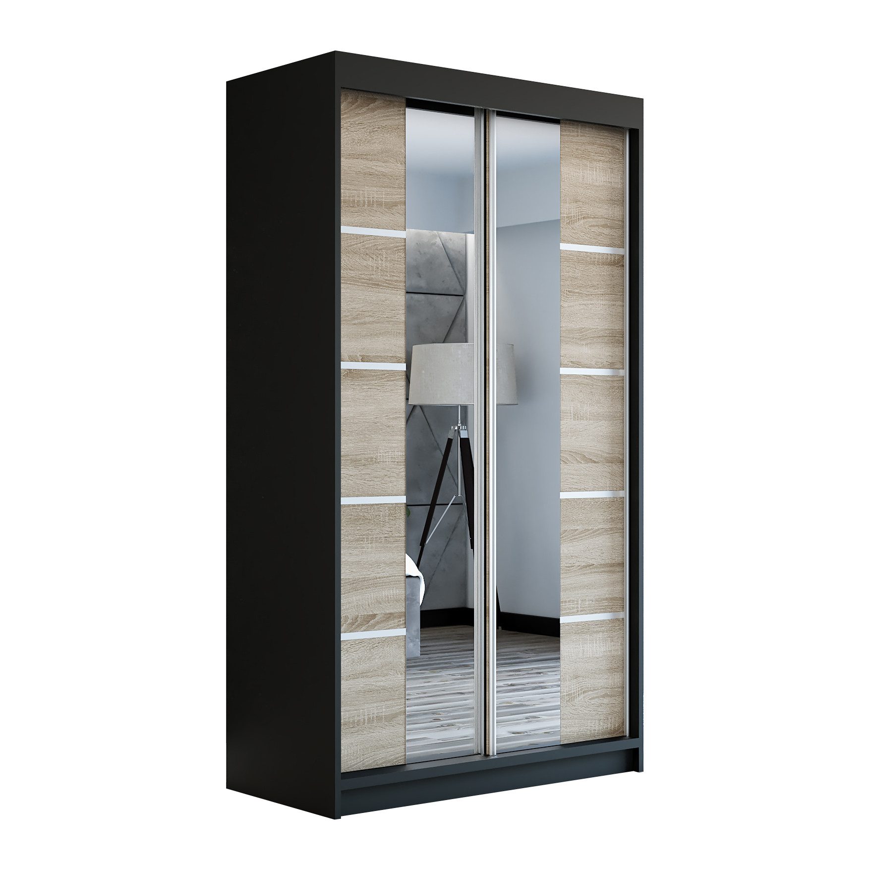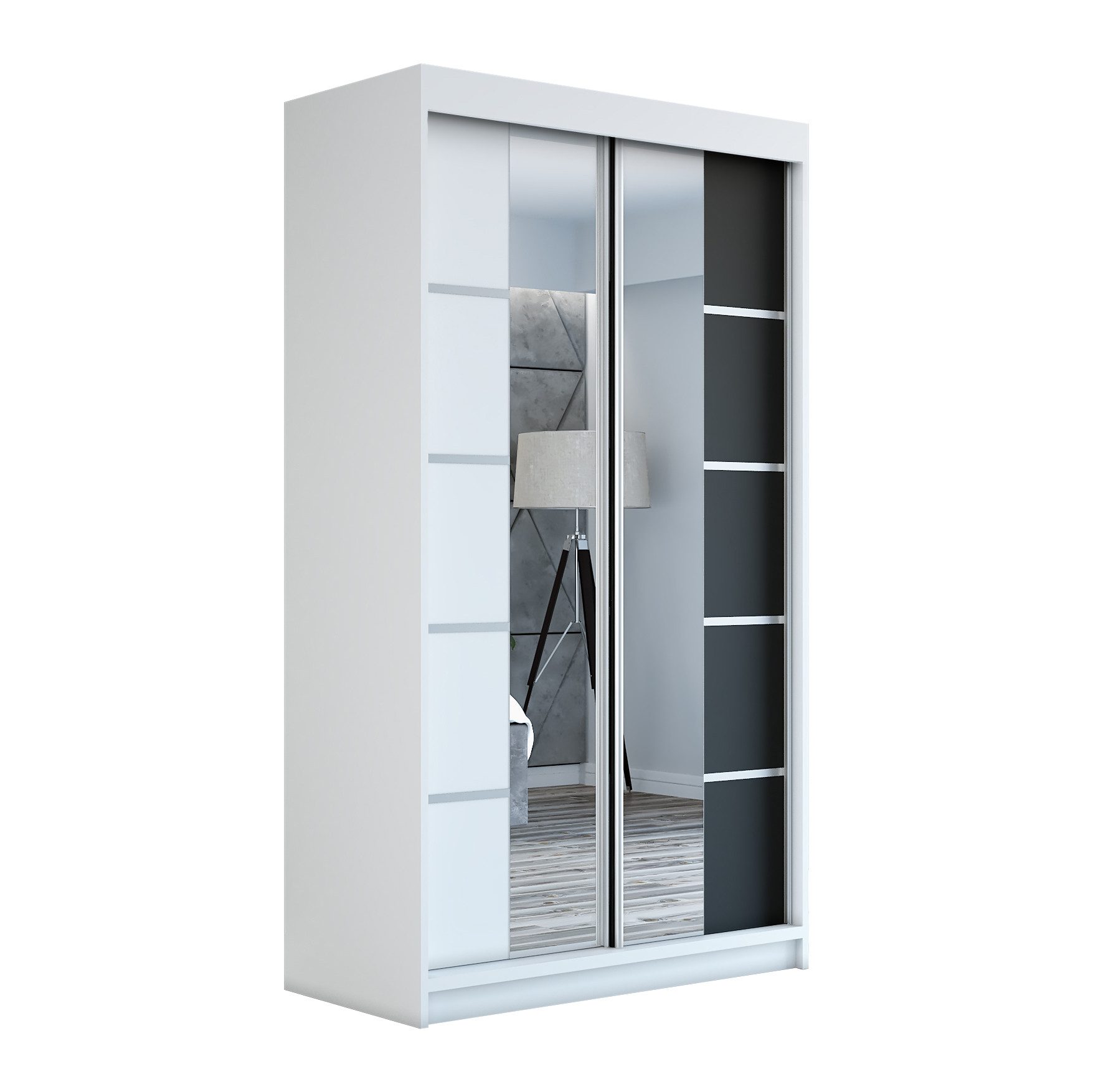 Der moderne 2-türige Kleiderschrank mit zwei Spiegeln ist die ideale Lösung für jedes Zuhause, das elegantes Design mit praktischer Funktionalität kombiniert. Der Schrank ist in drei verschiedenen Größen erhältlich (120 cm, 140 cm, 180 cm) sodass Sie das Modell auswählen können, das perfekt in Ihr Zimmer passt. Mit einer praktischen Kleiderstange und sechs Regalen bietet der Schrank ausreichend Platz für Ihre Kleidung und Accessoires. Die beiden Spiegel sorgen für praktische und stilvolle Ergänzungen, die den Raum optisch vergrößern.