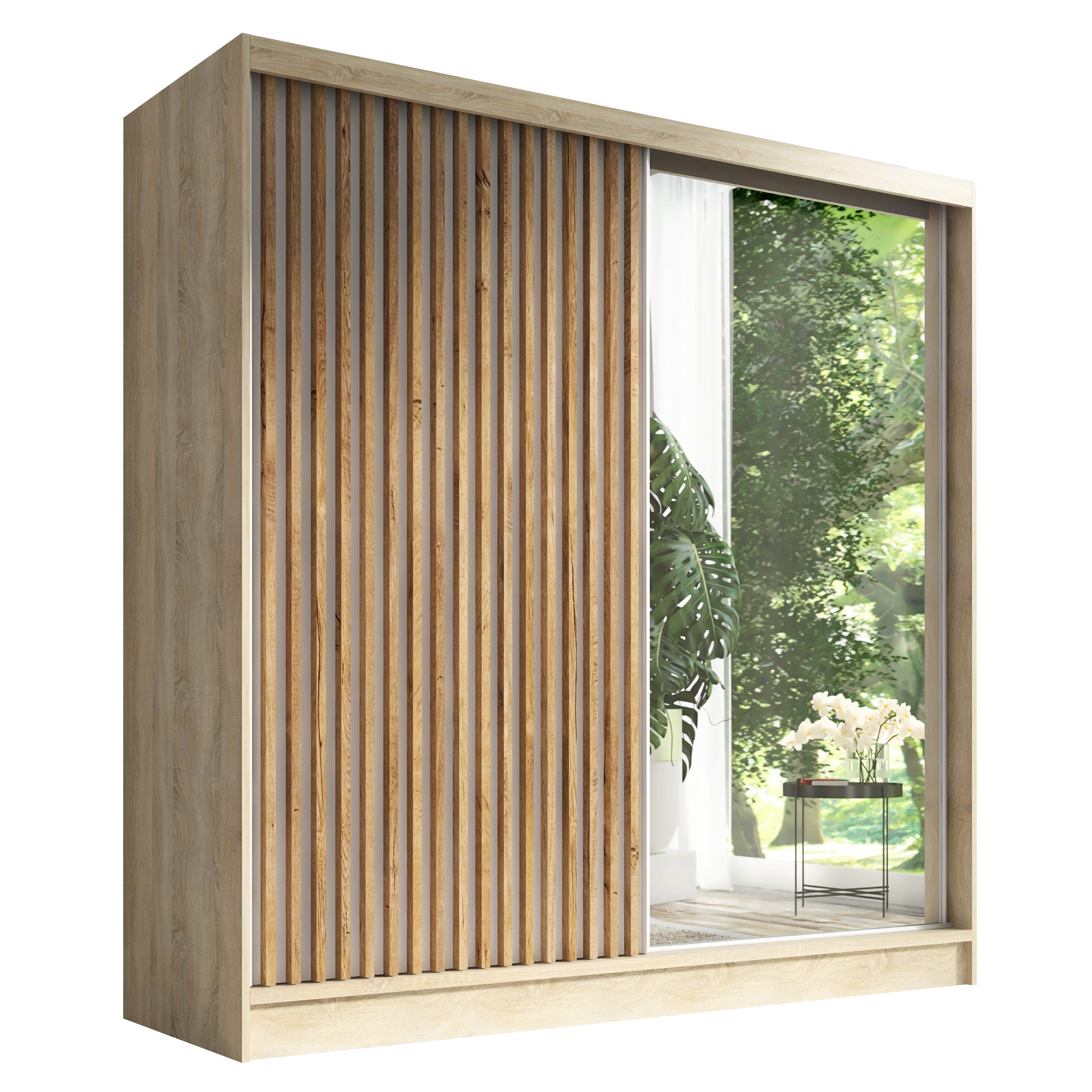 Der moderne 2-türige Kleiderschrank mit Spiegel ist die perfekte Lösung für jedes Zuhause, das Eleganz mit Funktionalität kombiniert. Mit praktischen Schubladen, Kleiderstangen und zahlreichen Regalen bietet er außergewöhnlich viel Stauraum. Der große Spiegel ist nicht nur praktisch, sondern sorgt auch für eine optische Vergrößerung des Raums. Der Schrank ist in verschiedenen Варіантиn erhältlich und fügt sich perfekt in jedes Interieur ein, vom Schlafzimmer bis hin zu Jugendzimmern oder Büros.