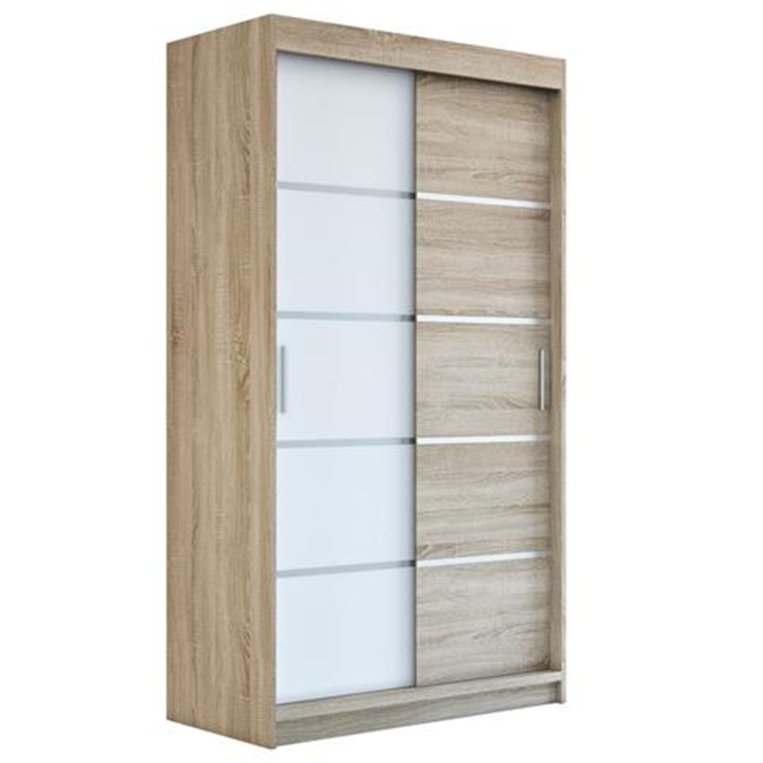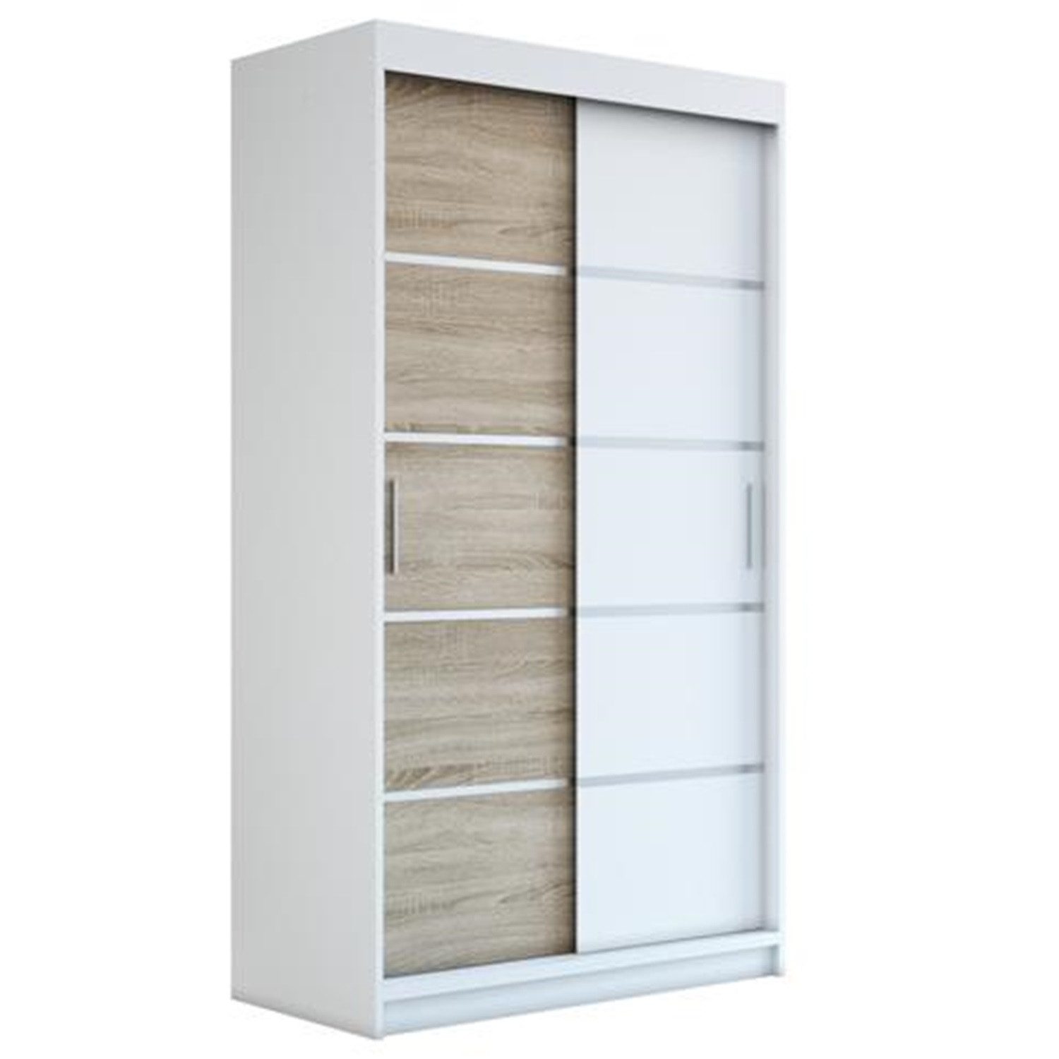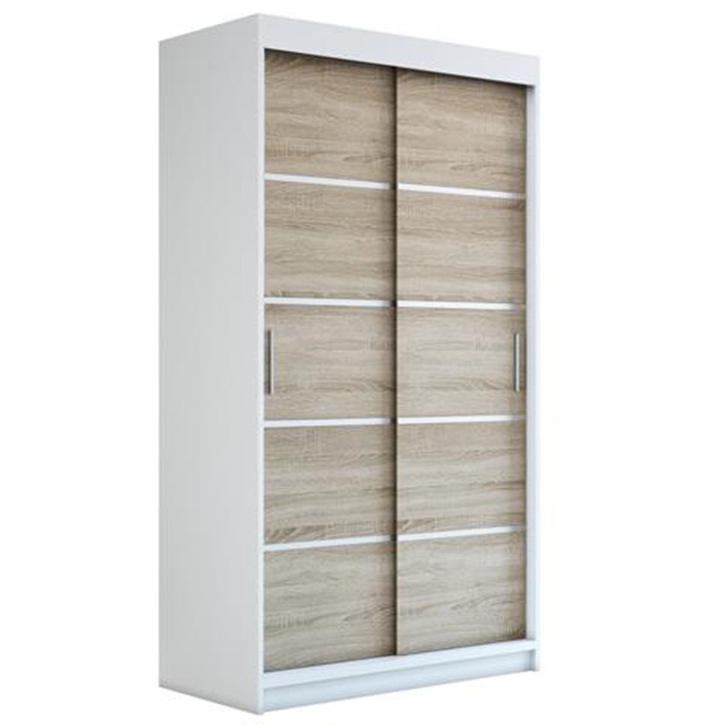 Der moderne 2-türige Kleiderschrank ist die ideale Lösung für jedes Zuhause, das elegantes Design mit praktischer Funktionalität kombiniert. Der Schrank ist in drei verschiedenen Größen erhältlich (120 cm, 160 cm, 180 cm), sodass Sie das Modell auswählen können, das perfekt in Ihr Zimmer passt. Mit einer praktischen Kleiderstange und sechs Regalen bietet der Schrank ausreichend Platz für Ihre Kleidung und Accessoires.