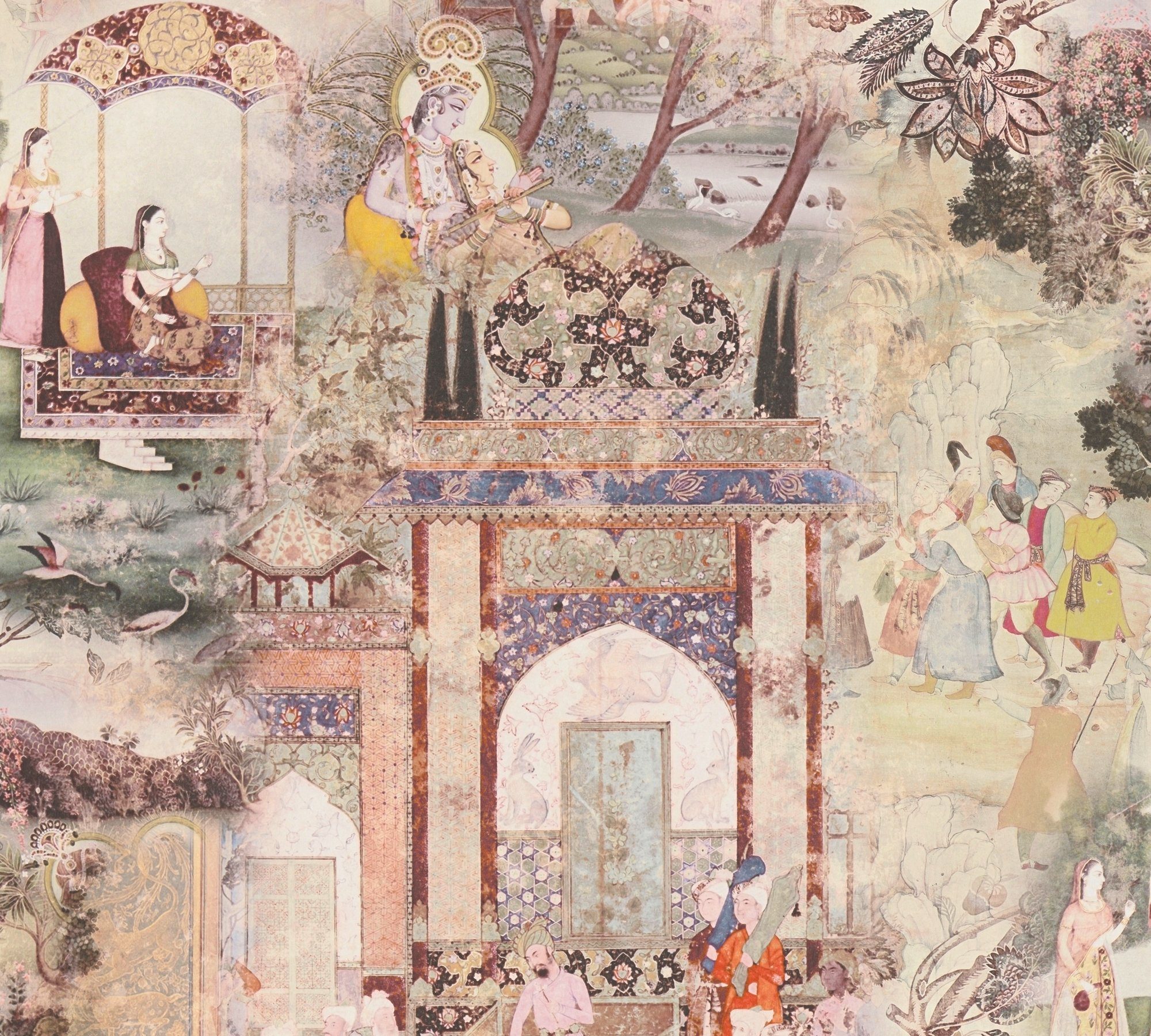 Art Muster | orientalische Tapete, Vintagetapete, Pferd, Menschen, Schwäne |