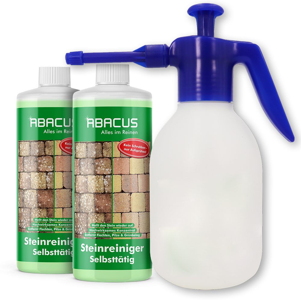 Set beinhaltet | 2x1000ml Steinreiniger Selbsttätig + 1,8L Sprühflasche |