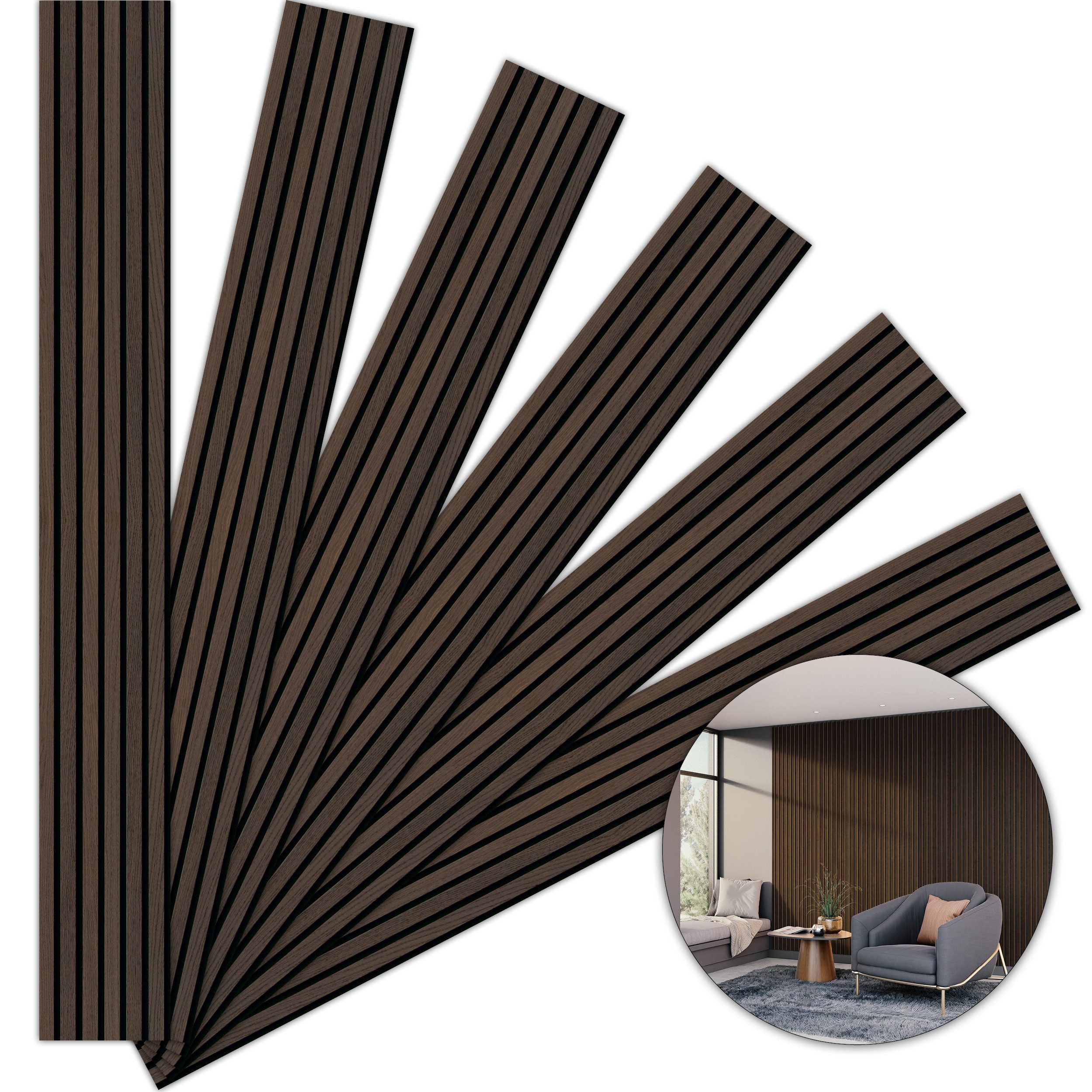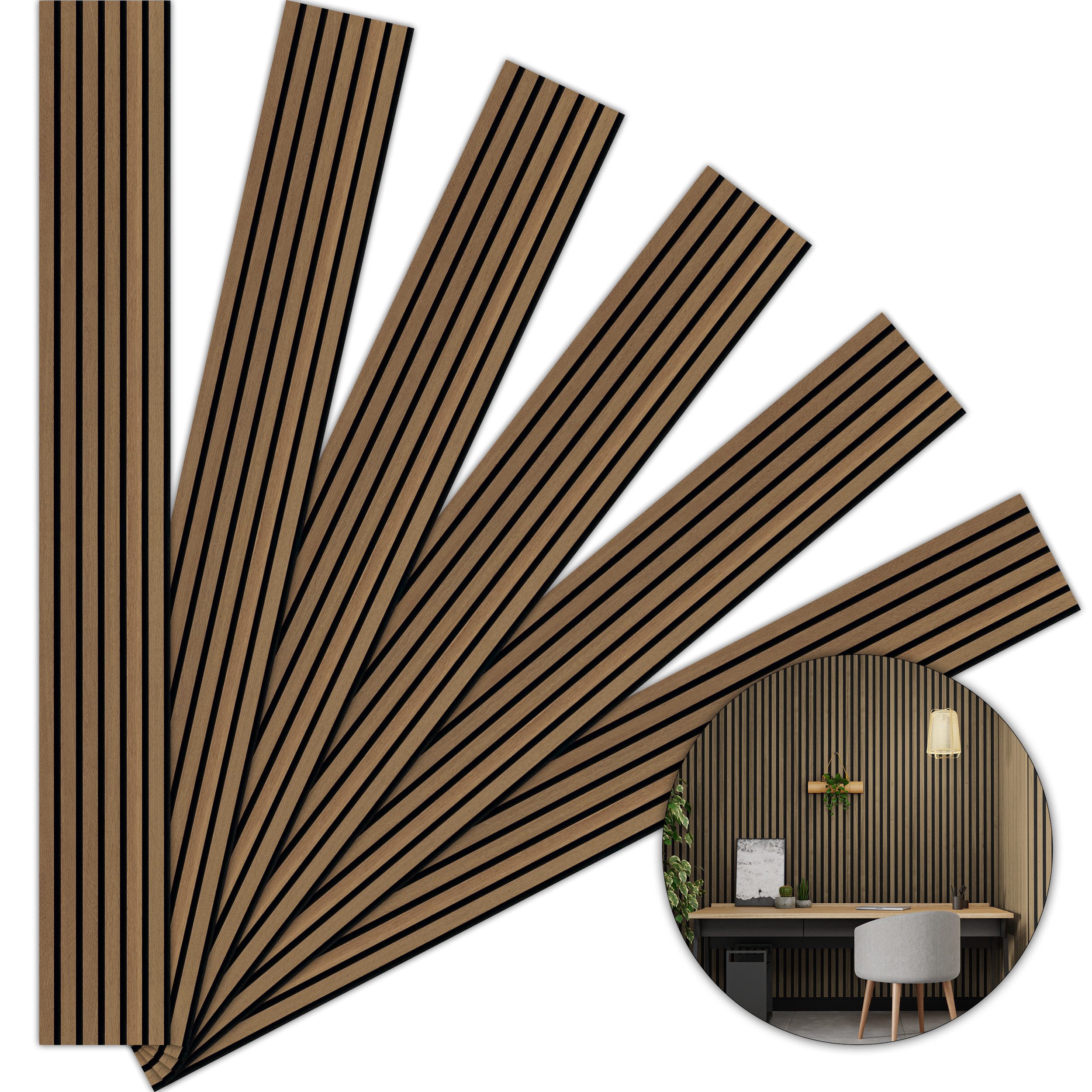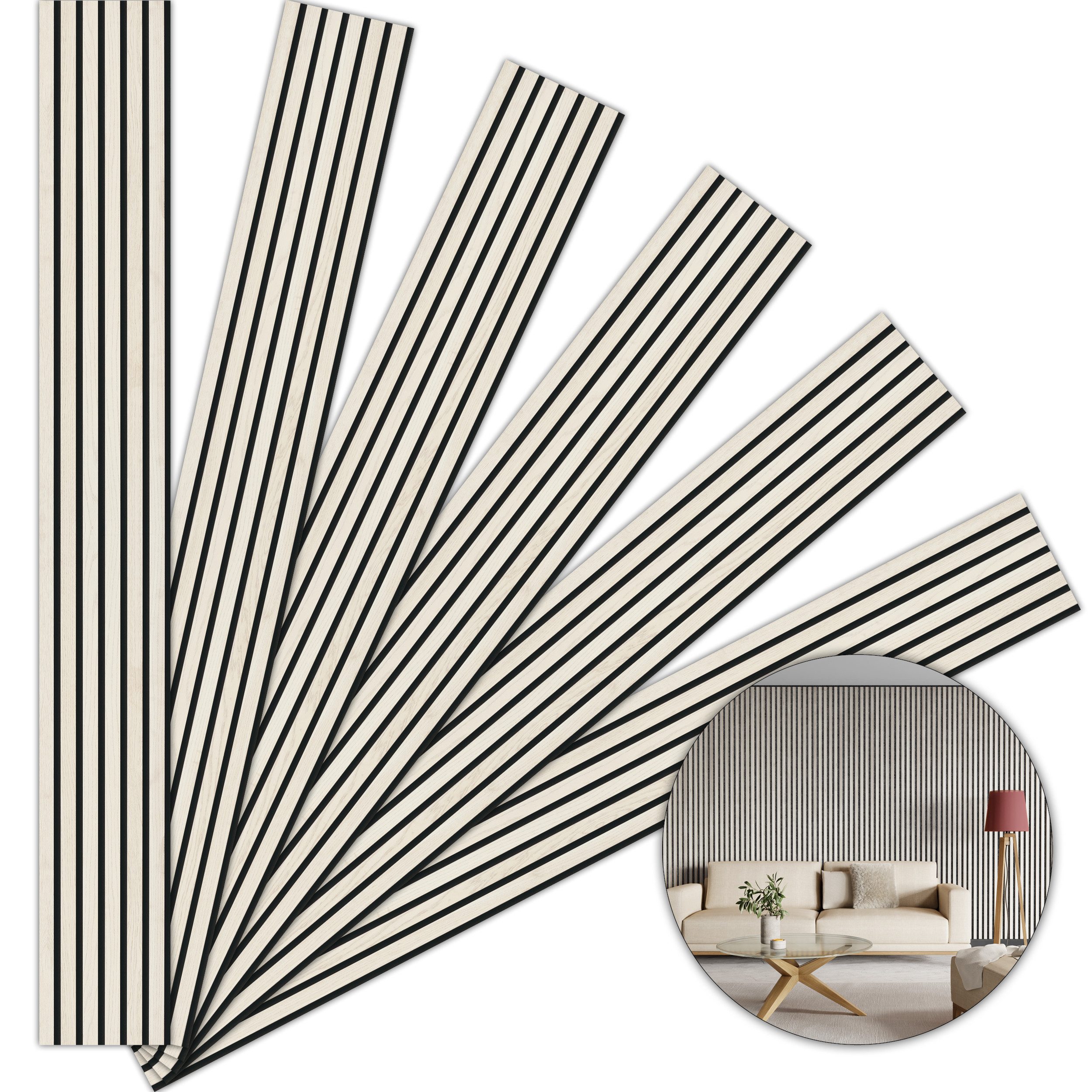 Lieferumfang | 6 Akustikpaneele á 250 x 30 cm Gesamtfläche 4,5 m² je Paket |