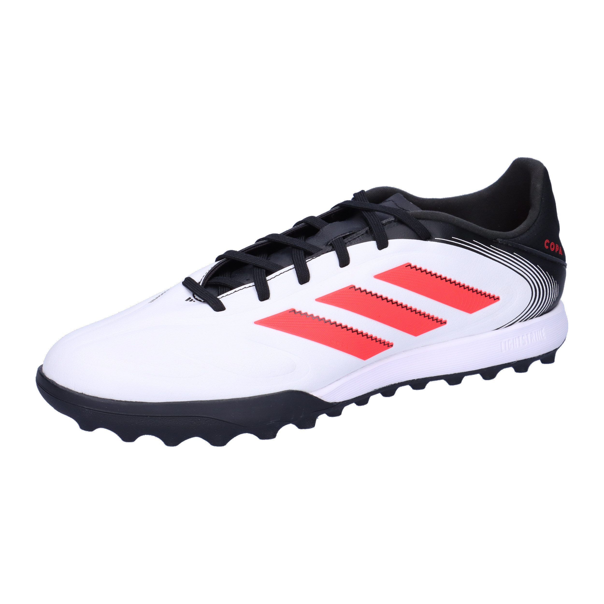 Werde eins mit Schuh und Ball. Der adidas Copa Pure 3 League ist rundum auf Komfort getunt, damit du auf dem Rasen dein bestes Spiel bringen kannst – unverfälscht und auf den Punkt. Sein lederähnliches Fusionfeel Synthetik-Obermaterial kommt mit einem 3D-Print im Vorfußbereich für ein überragendes Ballgefühl. Und die weiche EVA-Zwischensohle sorgt für ein angenehmes Tragegefühl bei jedem Sprint. Außerdem kannst du mit der Comfortplate Außensohle zeigen, was du auf kurzem Kunstrasen, Hart- und Aschenplätzen draufhast.