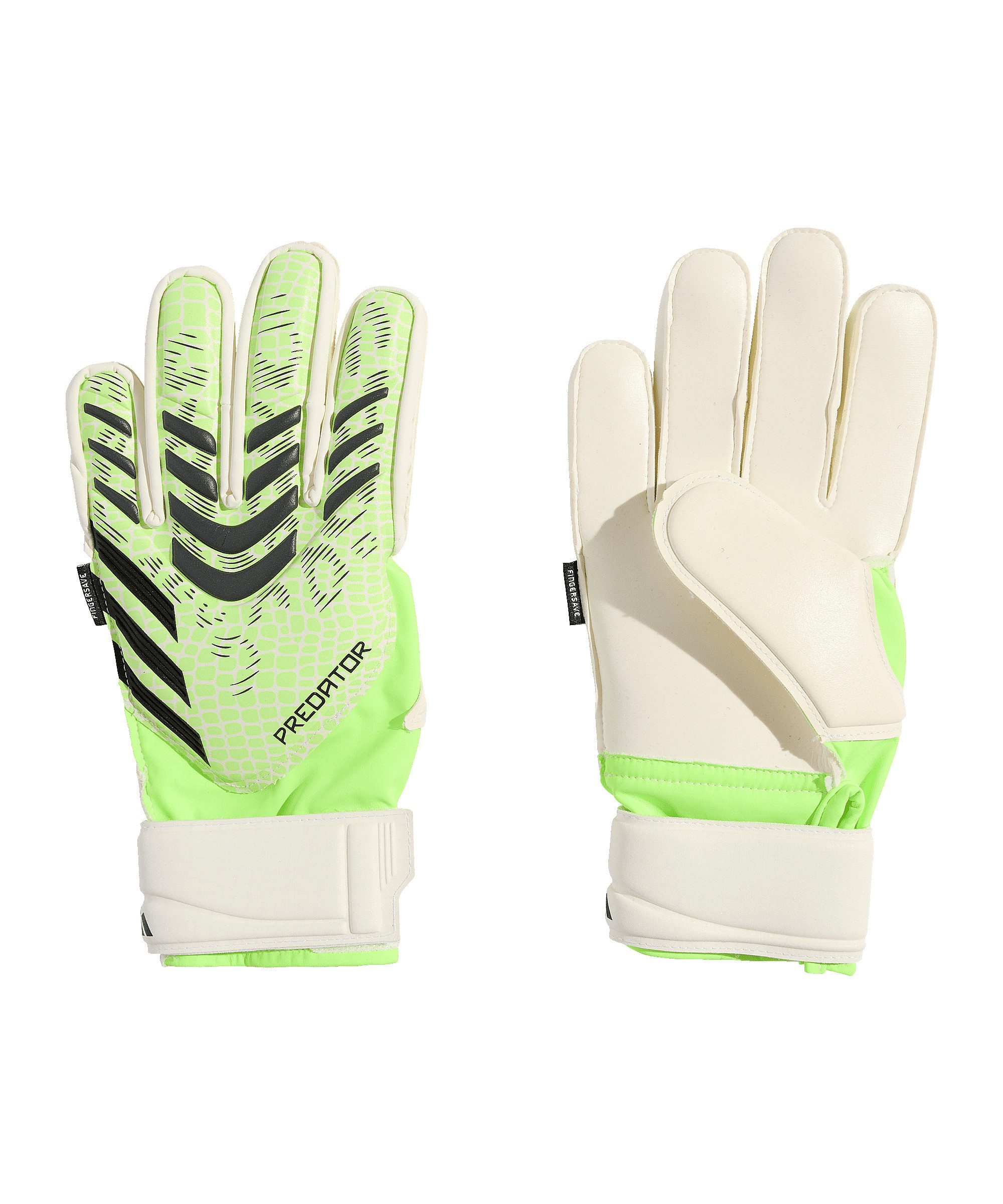 Mit den adidas Predator Match Fingersave Torwarthandschuhen Kids kannst du im Tor richtig auftrumpfen und jeden Ball sicher abwehren. Diese adidas Torwarthandschuhe sind speziell für junge Keeper entwickelt, die auf dem Platz glänzen wollen.