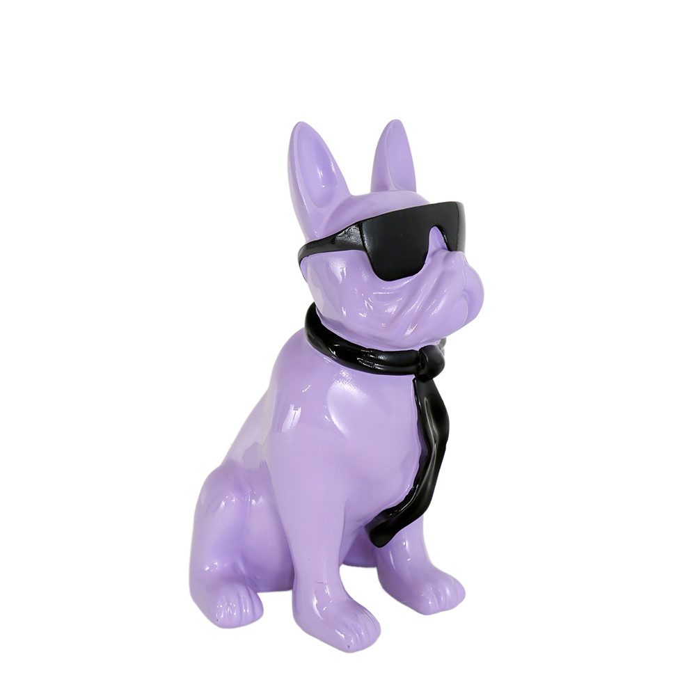 Die lila Bulldoggen Figur mit schwarze Brille und Schal ist in verschiedenen Farben erhältlich.