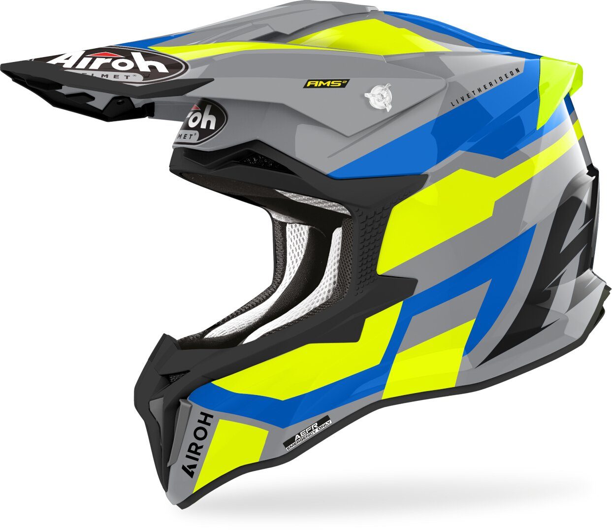 Der neue Airoh Helm schützt dich, wenn du abseits der Straße unterwegs bist. Die Schale besteht aus dem HPC (High Performance Composite) Material und kommt in drei verschiedenen Gröβen, damit der Helm auch optimal auf deinen Kopf passt. Zudem verfügt der Helm über ein herausnehmbares, hypoallergenes Innenfutter sowie das AEFR System (Airoh Emergency Fast Release) haben. In Bezug auf Sicherheit geht der Strycker keinen Kompromiss ein und ist mit dem revolutionären AMS² System (Airoh Multiaction Safety System) ausgestattet. Er besitzt zudem fünf Belüftungsöffnungen sowie auch hintere Entlüftungen, die stets für einen kühlen Kopf sorgen.
