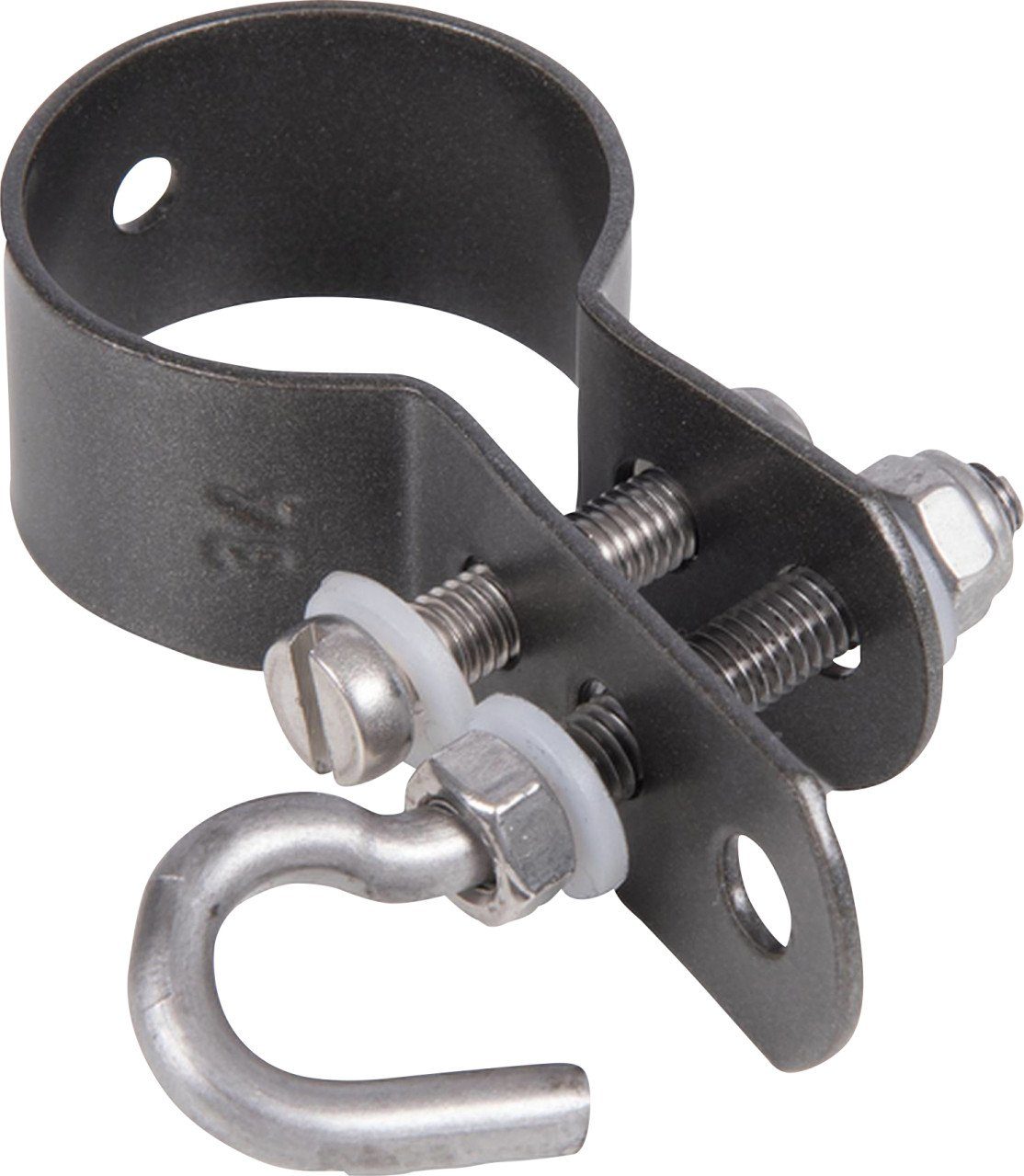 Produktdetails: Mit einer montierten Hakenschraube M6 und 3 Muttern aus Material: Edelstahl | mit fest angeschraubten Spanndrahthaltern | langlebig | Qualitätsprodukt Made in Germany | Schellen-Ø: 34 mm | Material: Stahl roh | Oberfläche: verzinkt, anthrazit-metallic kunststoffbeschichtet |