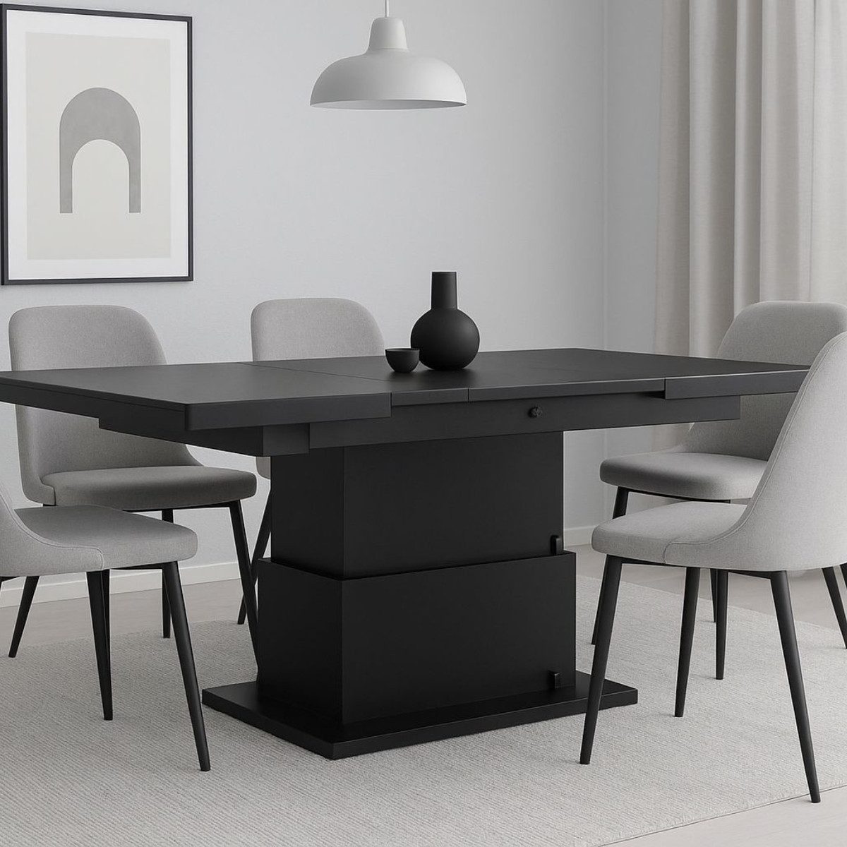 Dank der höhenverstellbaren und ausziehbaren Funktion lässt sich der Tisch flexibel anpassen – ob als niedriger Couchtisch für gemütliche Abende oder als erhöhter Esstisch, wenn mehr Platz benötigt wird. Die hochwertige Oberfläche in Weiß-Gold, Weiß-Silber oder Schwarz sorgt für Eleganz und fügt sich perfekt in unterschiedliche Wohnstile ein.
