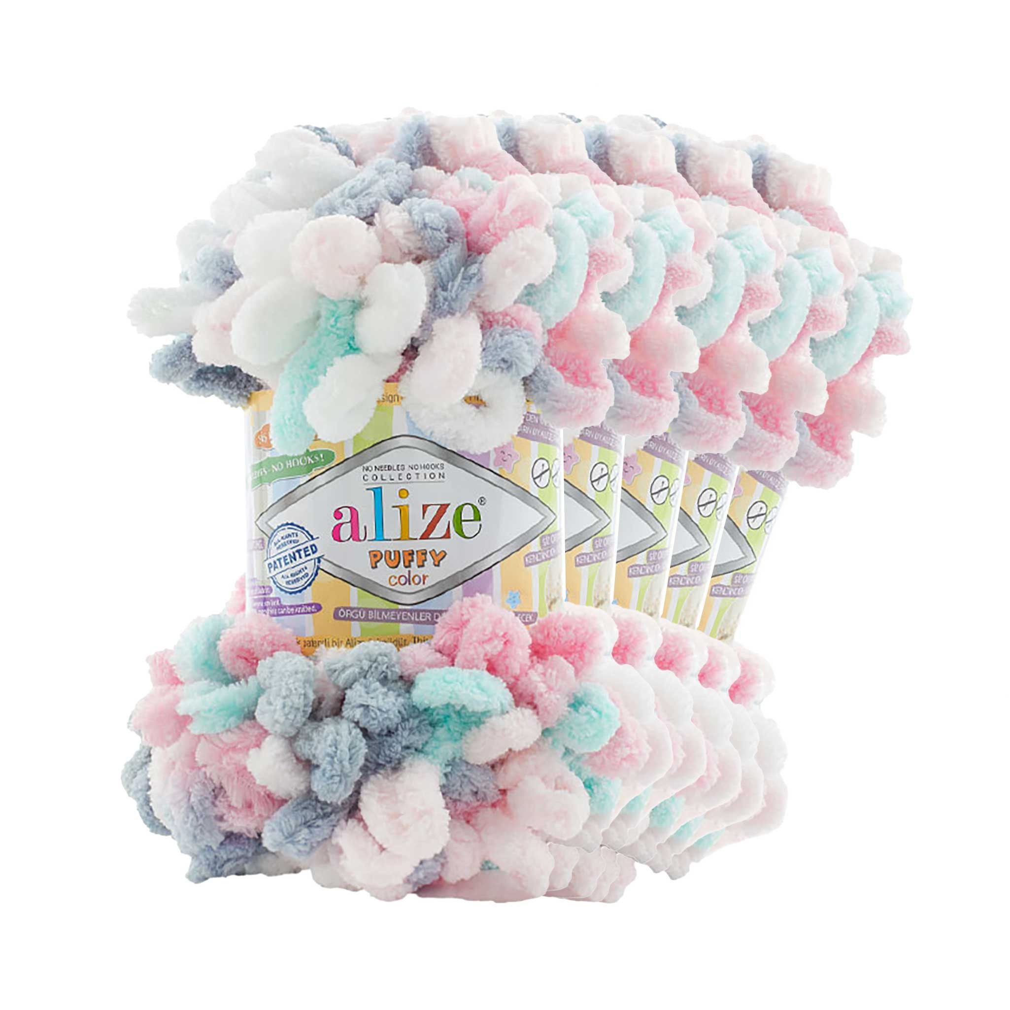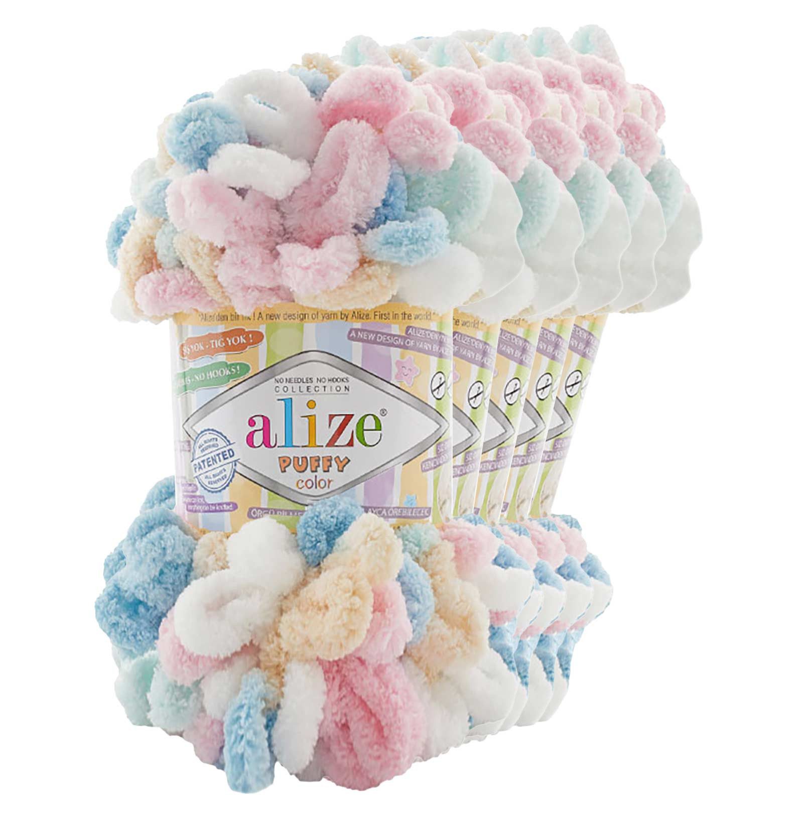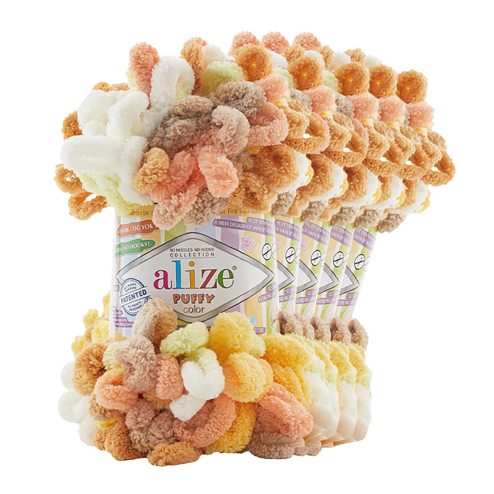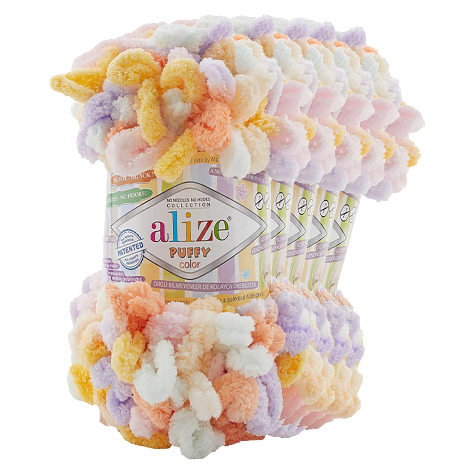 ALIZE Puffy Color ist ein plüschiges, super dickes und zauberhaft weiches Strickgarn welches mit den Fingern gestrickt wird. Die Verarbeitung ist so einfach, dass auch Kinder ihre helle Freude daran haben und schnelle Erfolge erzielen. Es ist ideal für angenehm warme Decken, kuschelige Strickjacken, flauschig weiche Mützen sowie süße Kuscheltiere. Mit seiner schönen Farbauswahl lassen sich traumhafte und kuschelige Babysachen stricken.
