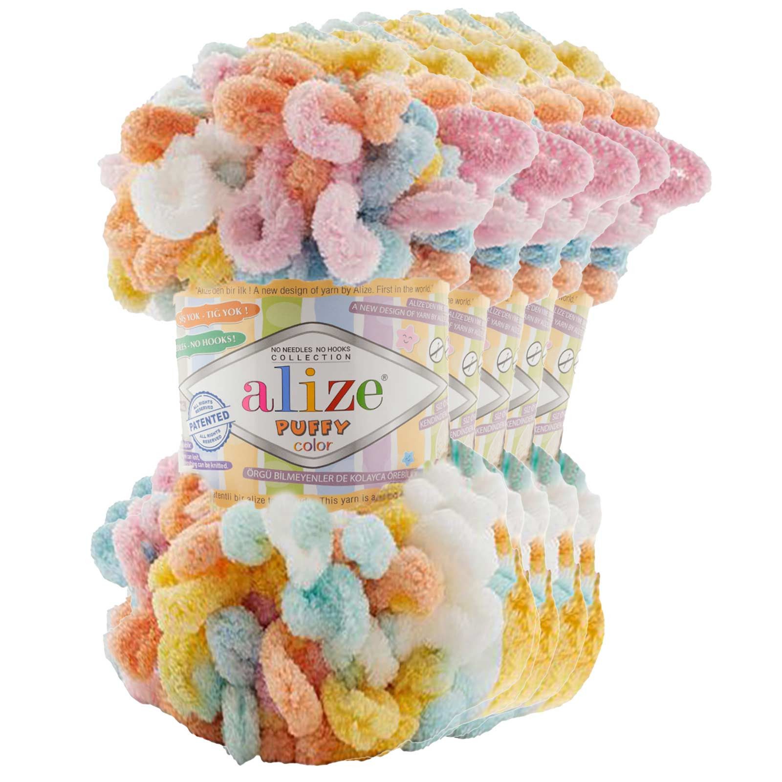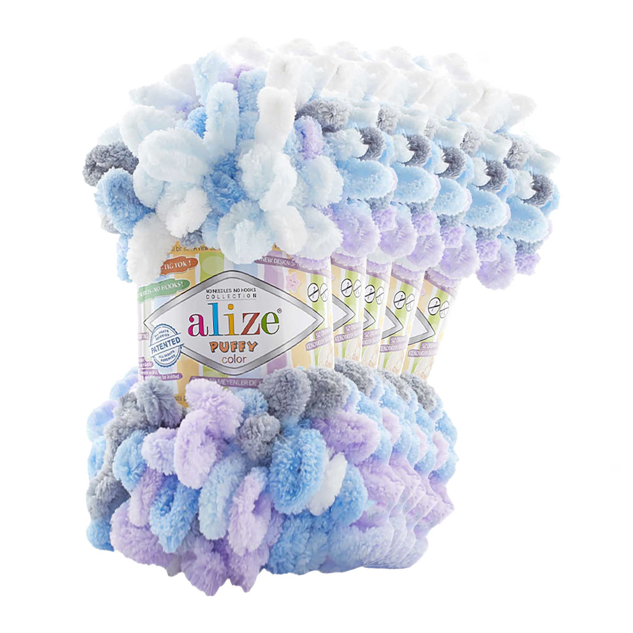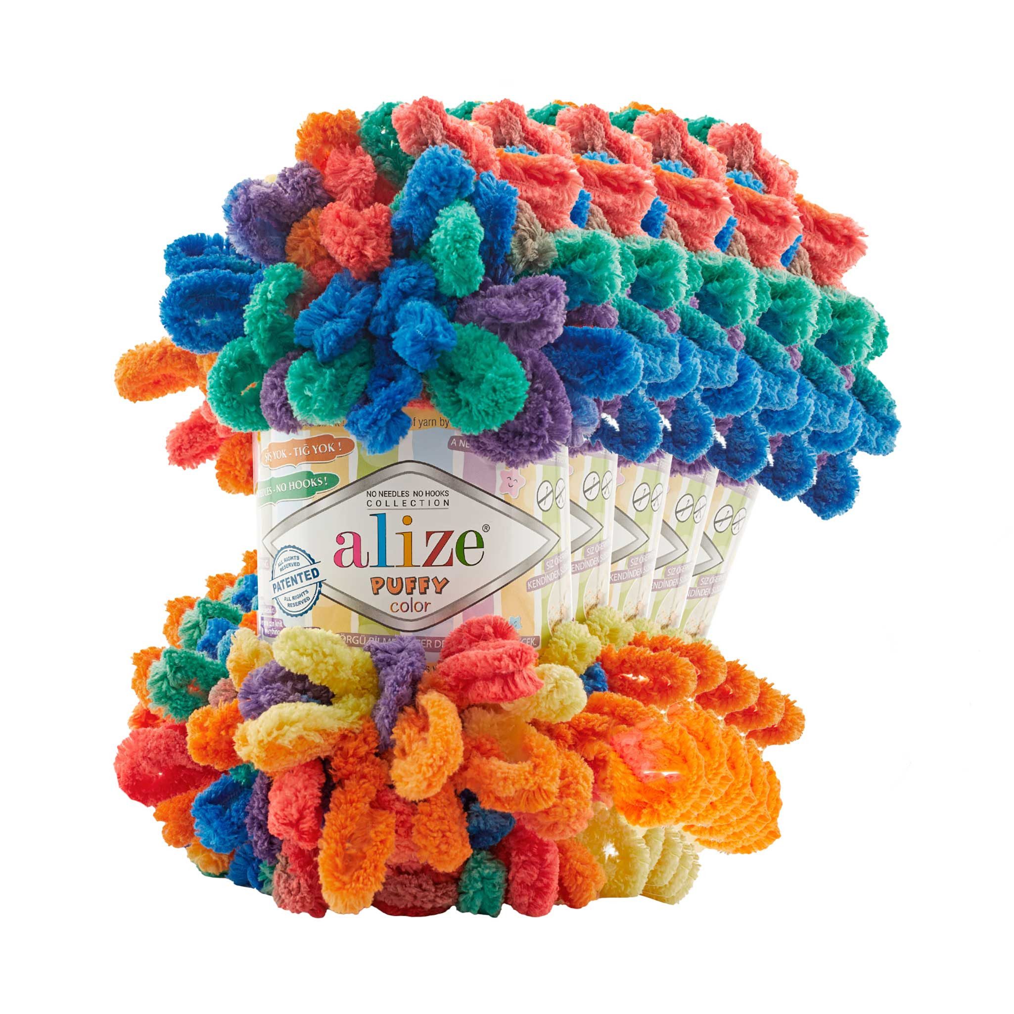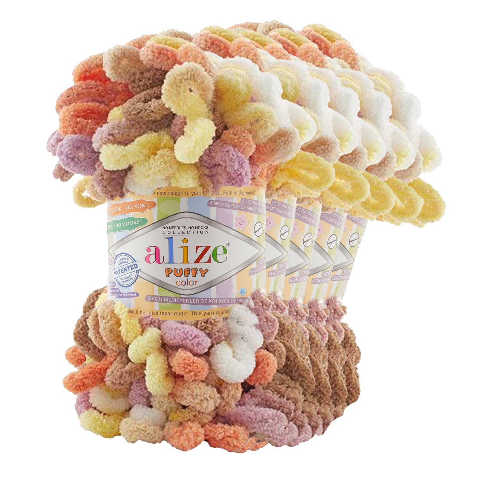 ALIZE Puffy Color ist ein plüschiges, super dickes und zauberhaft weiches Strickgarn welches mit den Fingern gestrickt wird. Die Verarbeitung ist so einfach, dass auch Kinder ihre helle Freude daran haben und schnelle Erfolge erzielen. Es ist ideal für angenehm warme Decken, kuschelige Strickjacken, flauschig weiche Mützen sowie süße Kuscheltiere. Mit seiner schönen Farbauswahl lassen sich traumhafte und kuschelige Babysachen stricken.