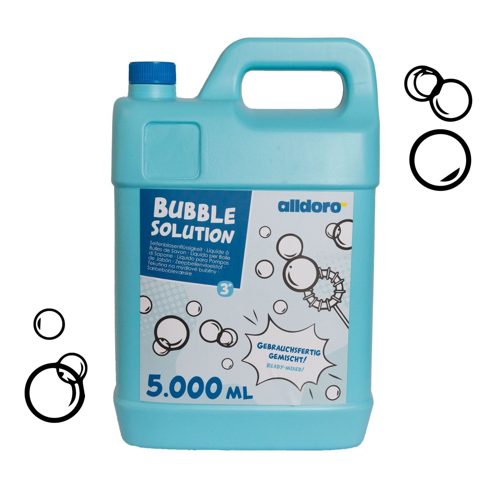 Unser 5 Liter Seifenblasen-Nachfüllkanister garantiert grenzenlosen Blasenspaß für Jung und Alt. Mit 5000 ml gebrauchsfertiger Seifenblasenflüssigkeit gehört das aufwendige Selbermischen der Vergangenheit an. Einfach den praktischen Schraubverschluss öffnen und sofort mit dem Blasen beginnen. Der stabile Kanister bewahrt die Seifenblasenlösung sicher auf und verhindert lästiges Verschütten.