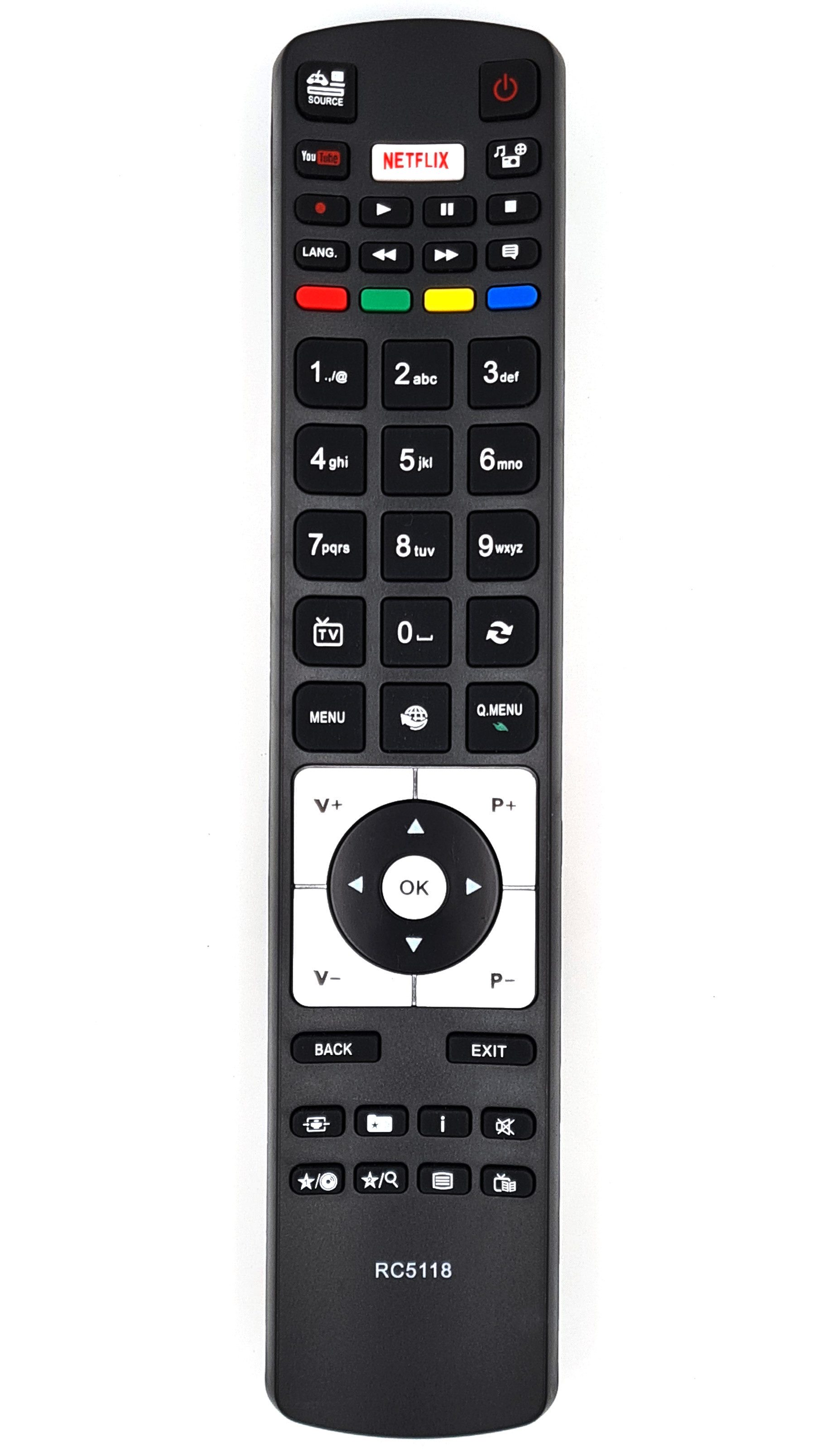 Alltro Ersatz TV Fernbedienung für Telefunken RC5118 / RC5117 / Fernseher Fernbedienung (Mit YouTube-, Netflix-Tasten)