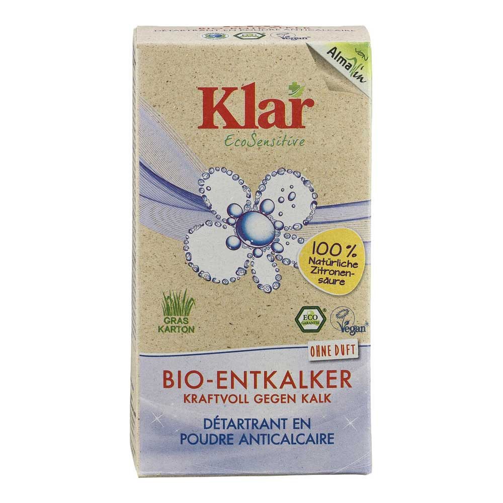 Der KLAR Bio-Entkalker entfernt auf natürliche Weise problemlos selbst hartnäckige Kalkablagerungen an Haushaltsgeräten und Oberflächen. Rein natürliche, hochwirksame Zitronensäure ist ökologisch und biologisch vollständig abbaubar. Bei der Anwendung entstehen keine beißenden Gerüche und die Atemwege werden geschont. Für Haushaltsgeräte, Heißwassergeräte, Wasch- und Spülmachinen, Armaturen geeignet.