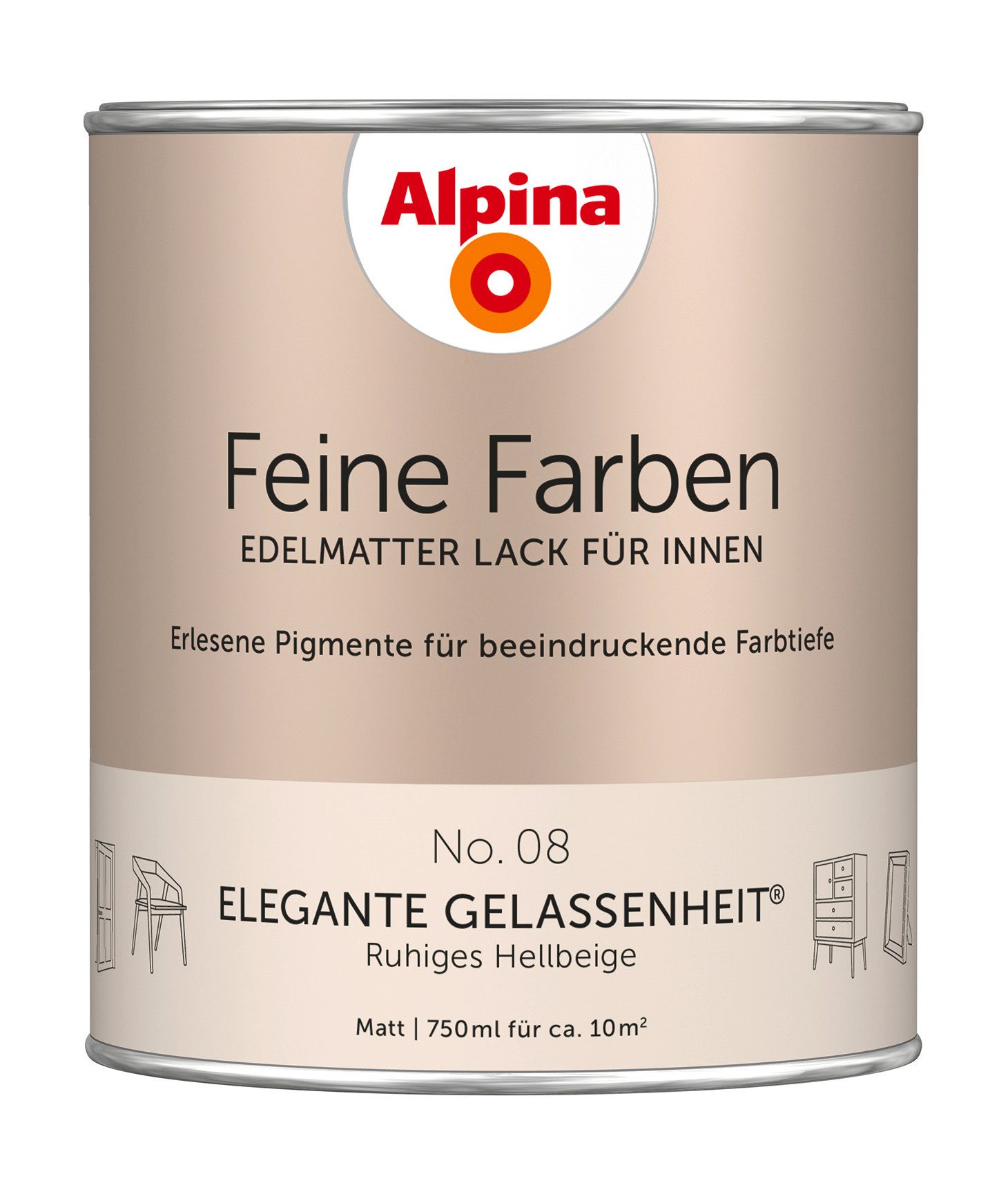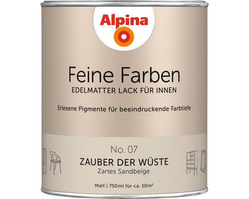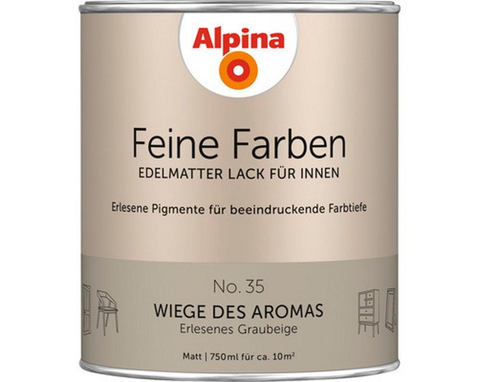 34 edelmatte, zeitlose Buntlacke mit beeindruckender Farbtiefe und perfektem Verlauf. Mit Alpina Feine Farben Lack verleihen Sie Ihren Möbeln, Türen oder Deko-Objekten einen edelmatten, noblen Charakter und setzen Ihr Zuhause gekonnt in Szene. Jede einzelne dieser zeitlos-klassischen Nuancen besitzt eine einzigartige Persönlichkeit. In harmonischer Kombination mit den Feine Farben Wandfarben schaffen sie ein edles, vollendetes Raumgefühl.