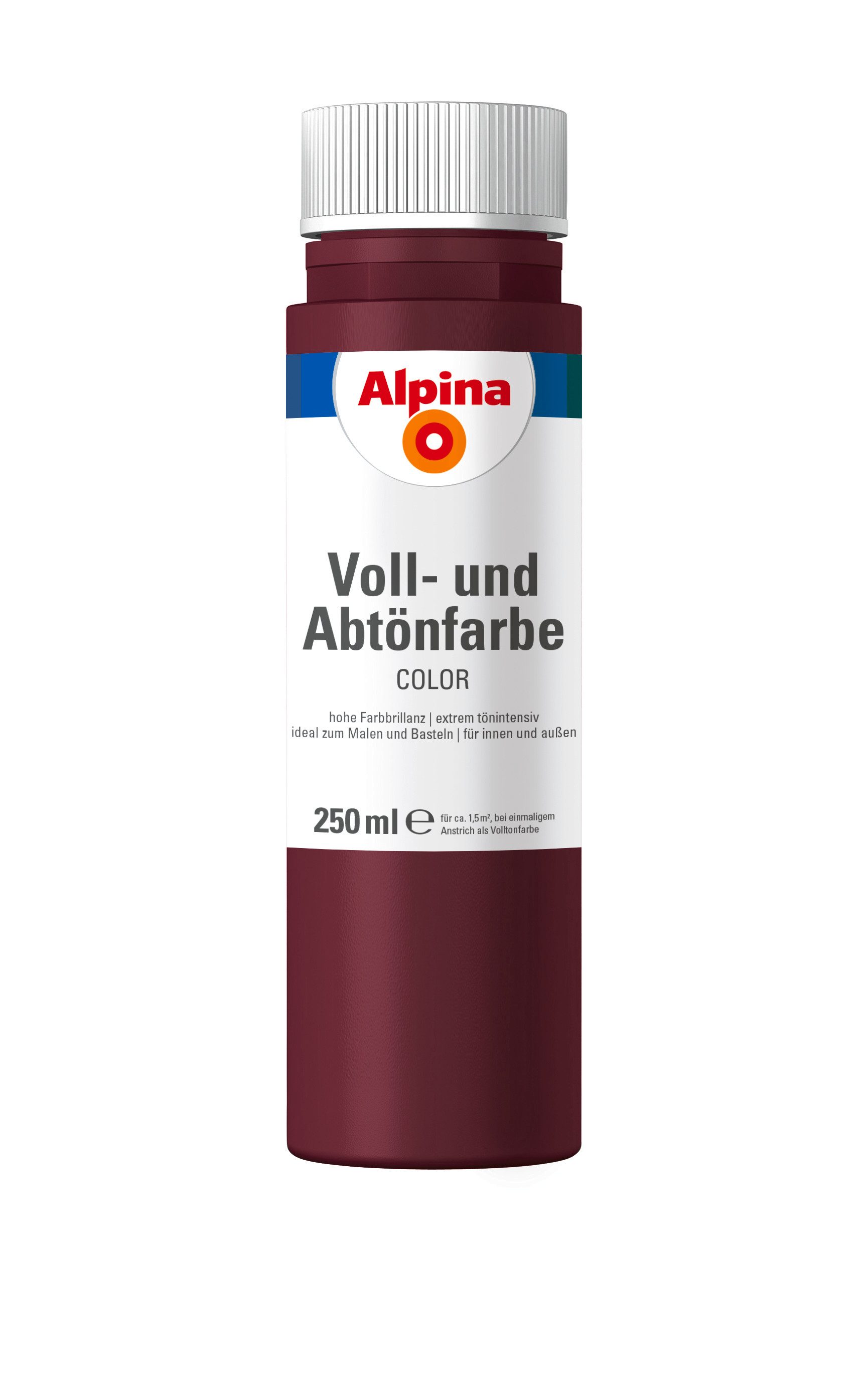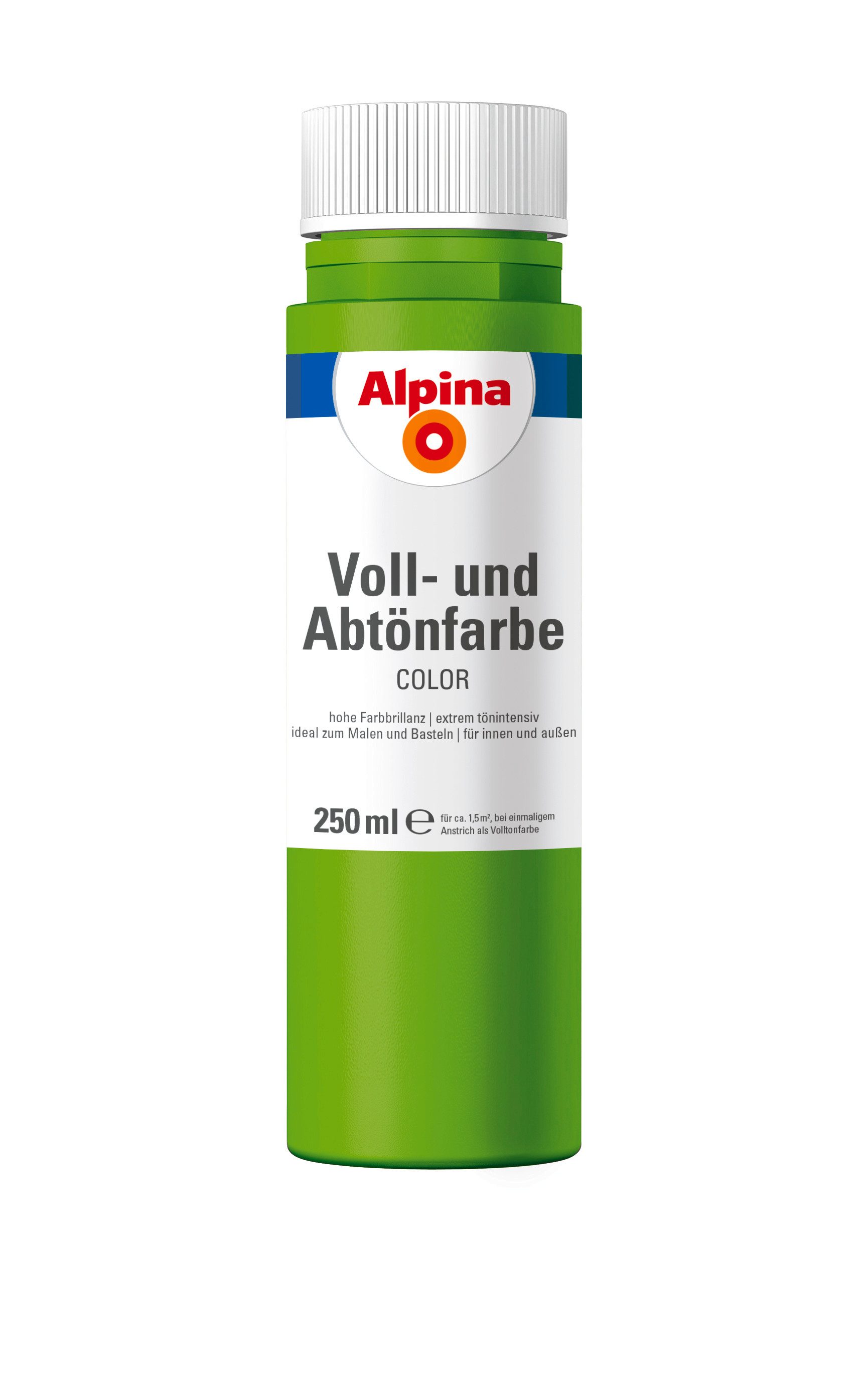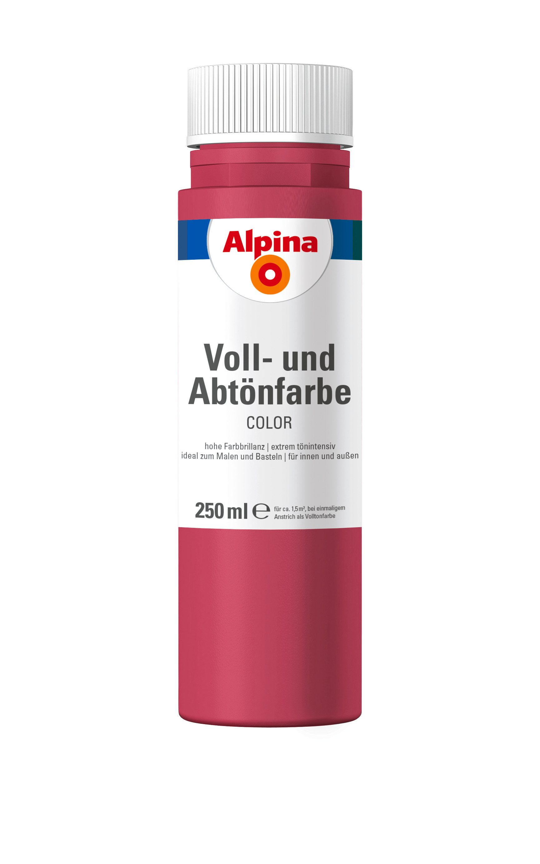 24 attraktive Farben, die mit Weiß individuell abgemischt werden können: Einfach Farbton in Alpinaweiß o. Ä. einrühren, fertig! Je nach Mischverhältnis werden so aus einer Farbe sechs Nuancen. Ob für den Anstrich von Fassaden oder Zimmern, zum Abtönen von Dispersionsfarbe oder Latexfarbe oder pur zum Malen und Basteln: Alpina Color sind Voll- und Abtönfarben in Markenqualität. Tipp: Genug Farbe mischen! Im Nachhinein ist es schwierig, denselben Farbton noch einmal zu erreichen.