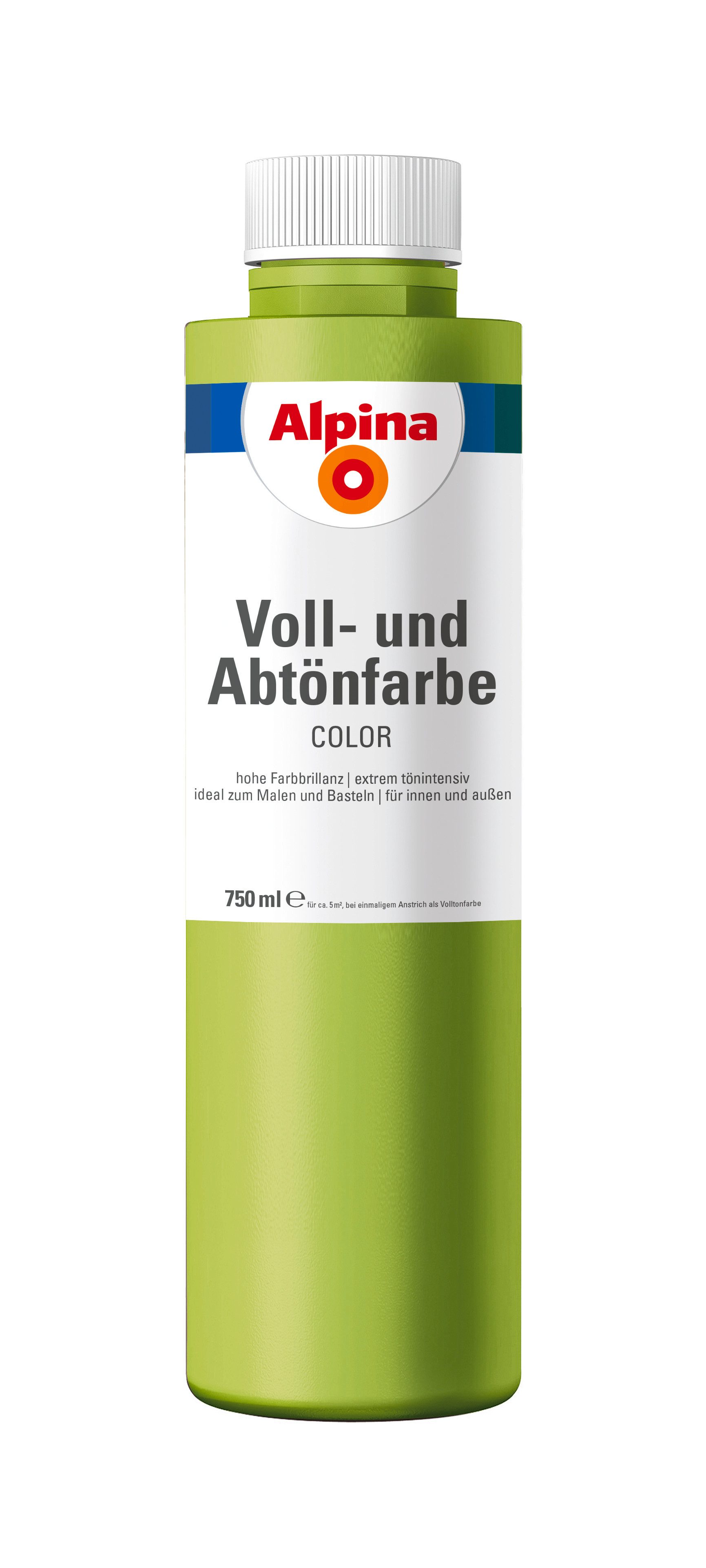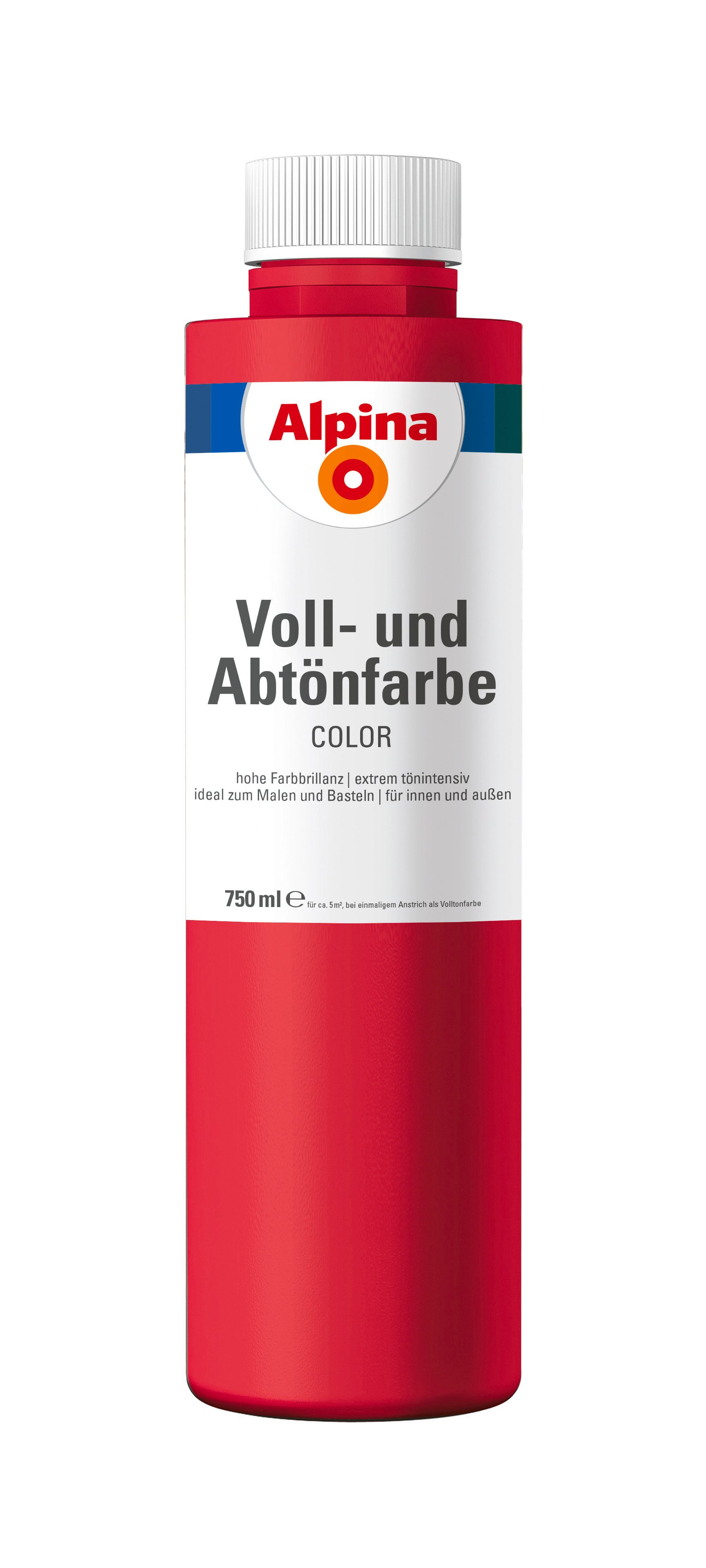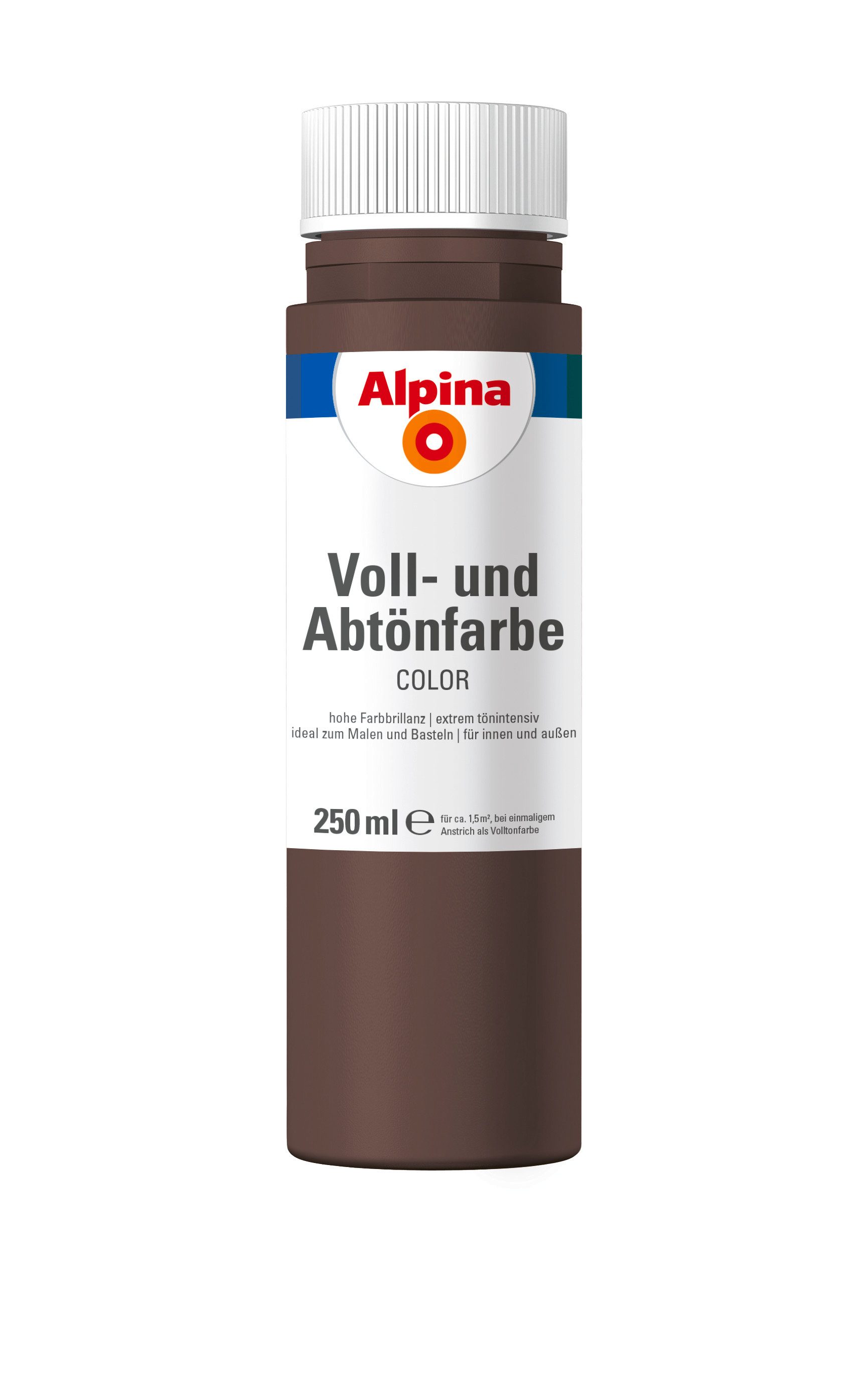 24 attraktive Farben, die mit Weiß individuell abgemischt werden können: Einfach Farbton in Alpinaweiß o. Ä. einrühren, fertig! Je nach Mischverhältnis werden so aus einer Farbe sechs Nuancen. Ob für den Anstrich von Fassaden oder Zimmern, zum Abtönen von Dispersionsfarbe oder Latexfarbe oder pur zum Malen und Basteln: Alpina Color sind Voll- und Abtönfarben in Markenqualität. Tipp: Genug Farbe mischen! Im Nachhinein ist es schwierig, denselben Farbton noch einmal zu erreichen.