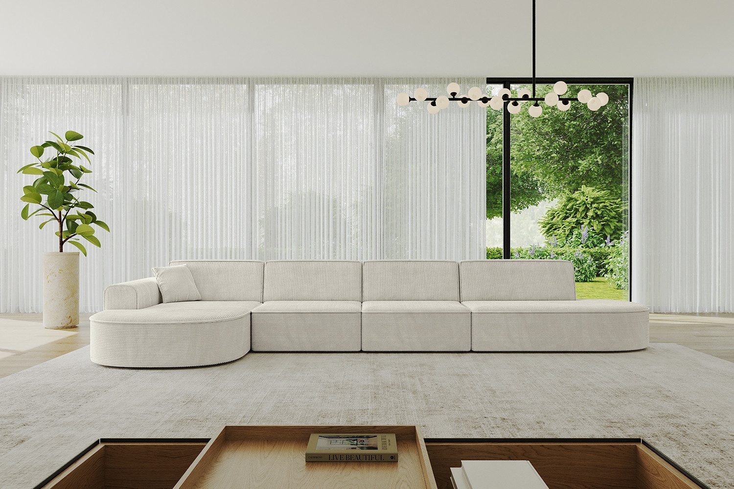 Dieses Ecksofa vereint zeitloses Design mit höchstem Sitzkomfort. Die hochwertige Polsterung sorgt für eine angenehme Unterstützung und lädt zum Entspannen ein. Dank der robusten Konstruktion und sorgfältig ausgewählten Materialien überzeugt das Sofa durch Langlebigkeit und Stabilität. Die harmonische Farbauswahl und das elegante Design fügen sich perfekt in verschiedene Wohnstile ein und setzen stilvolle Akzente im Wohnbereich.