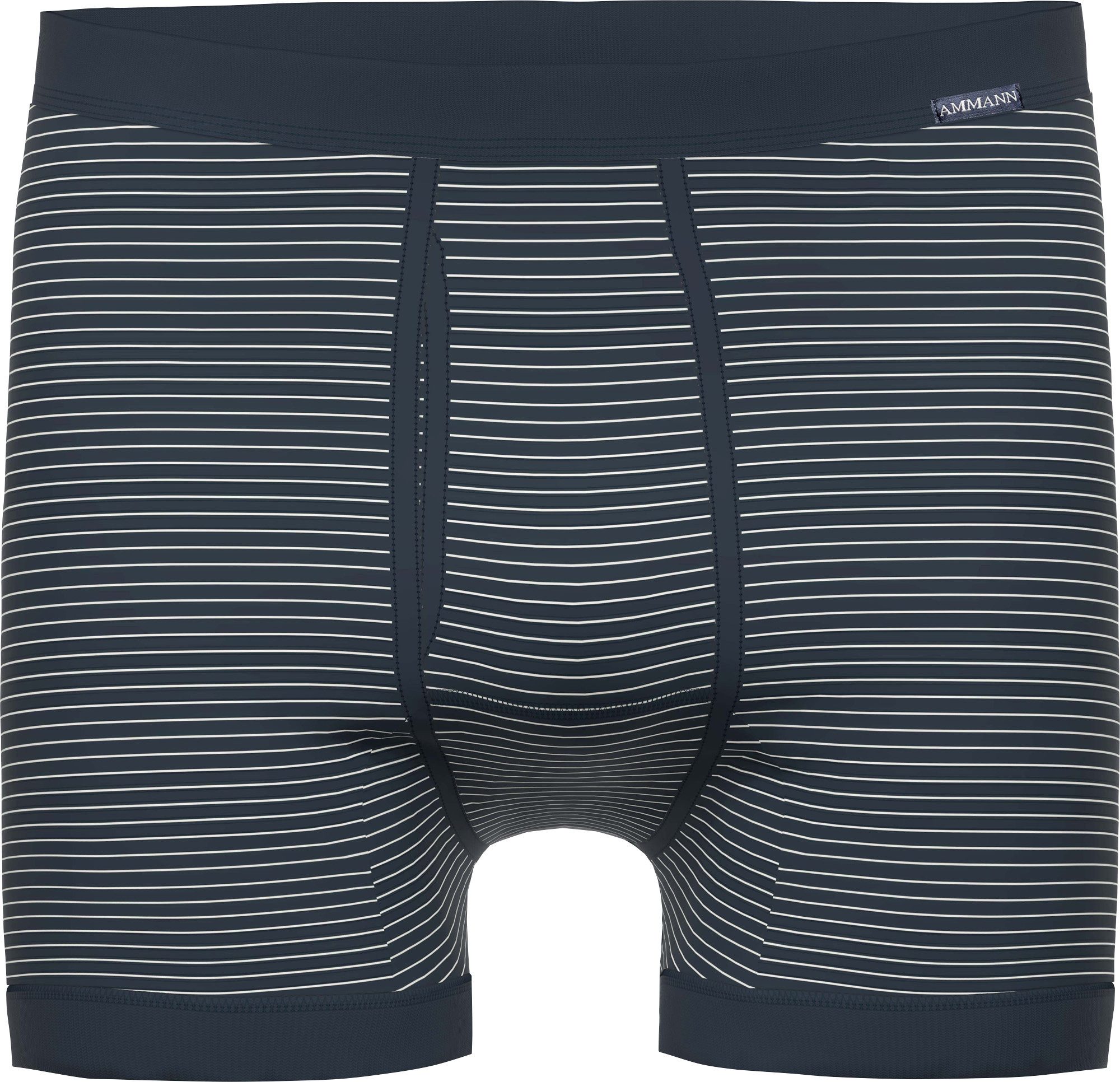 Ammann Bio Feinripp Herren-Long-Schlüpfer. Der Klassiker für hohe Ansprüche verwöhnt mit einem ausgezeichneten Tragekomfort. Dies gewähren der sportliche Schnitt ohne störende Seitennähte, die elastische Strickart sowie der hautschmeichelnde Stoff, der aus feinster kbA-Baumwolle (kbA = kontrolliert biologischer Anbau), zertifiziert nach GOTS, hergestellt wurde. Sorgfältig gearbeitet mit Eingriff und Komfortgummibund. Optisch ansprechend sind die gestrickten Ringel. Auch nach vielen Wäschen bleibt das Material weich, formstabil, anschmiegsam und dauerhaft schön.