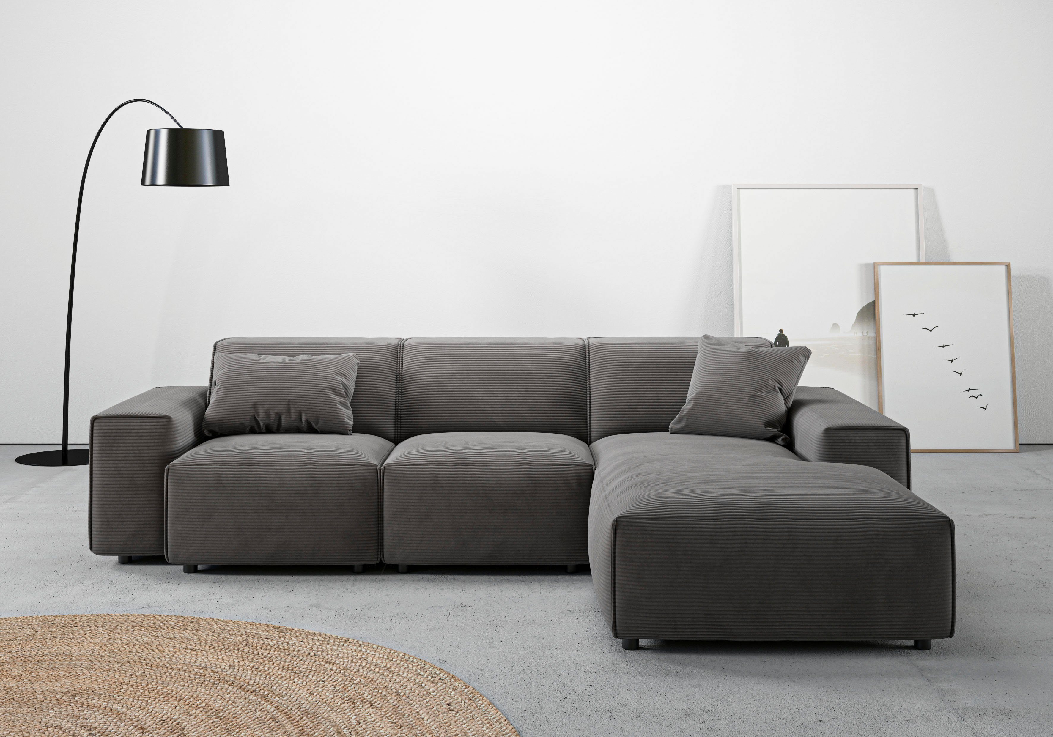 Mit dem Ecksofa »Glimminge L-Form auch in Breitcord, Feincord + Easy care-Bezug,« von andas findet jeder einen kuscheligen Platz.