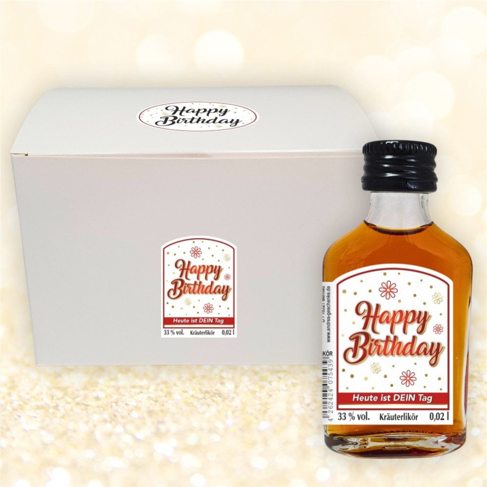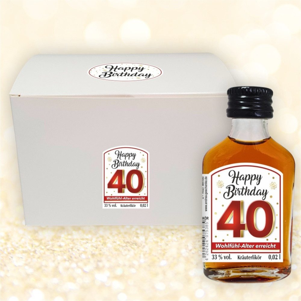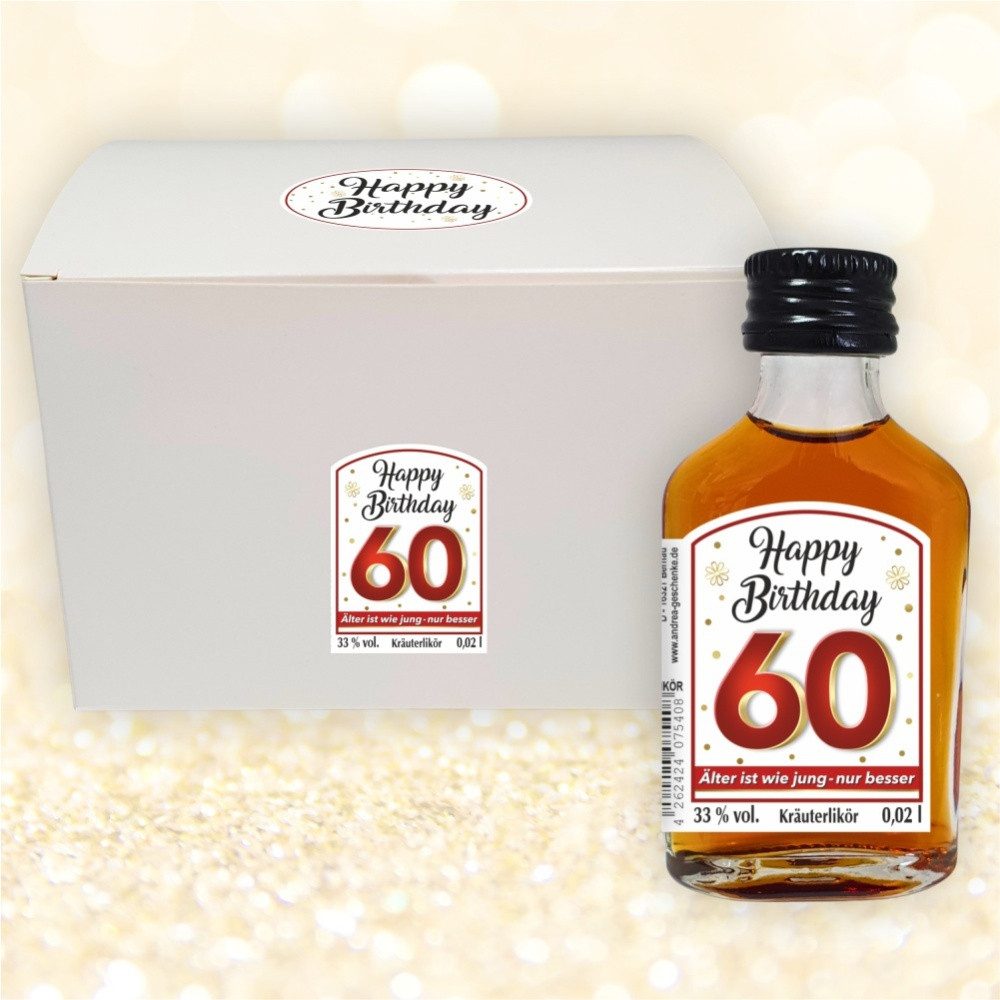 24er Kräuterlikör Box zum 60. Geburtstag – Geschenkset mit 24 x 2cl Likör – Happy Birthday Zahlengeschenk – 33% vol – Partybox mit Kräuterlikör – Älter ist wie jung, nur besser