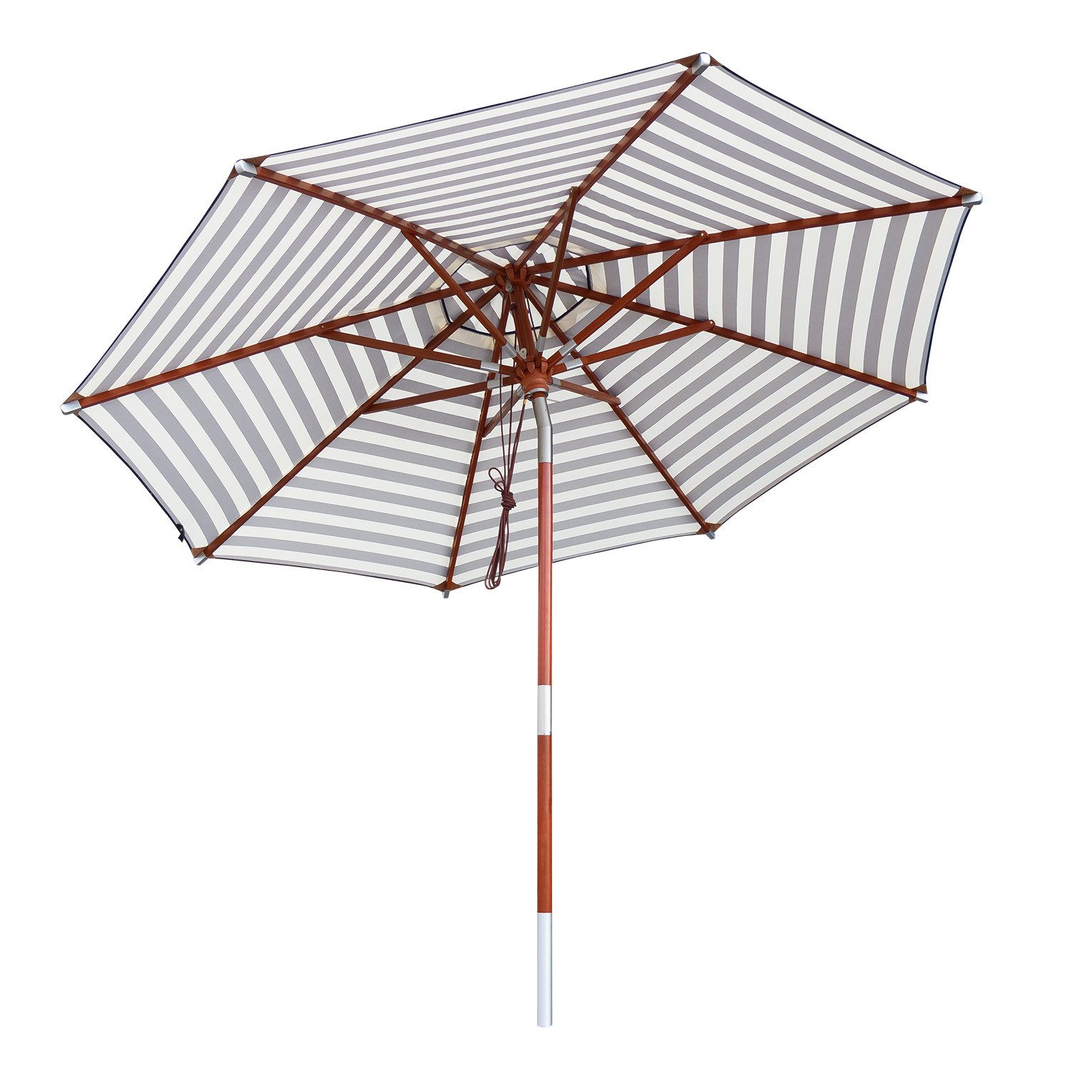 Der zweiteilige Schirm-Stamm aus indonesischem Hartholz mit Aluminiumhülse garantiert hohe Stabilität und schützt das Holz vor Abnutzung im Ständer.