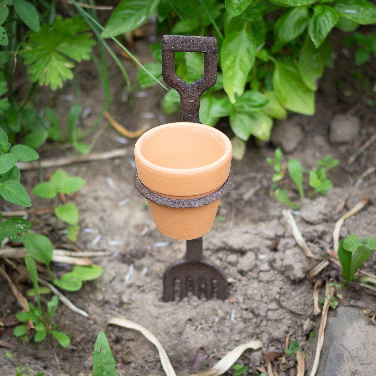 Lieferumfang: 1 Blumentopfhalter als Forke, antikbraun, mit Blumentopf