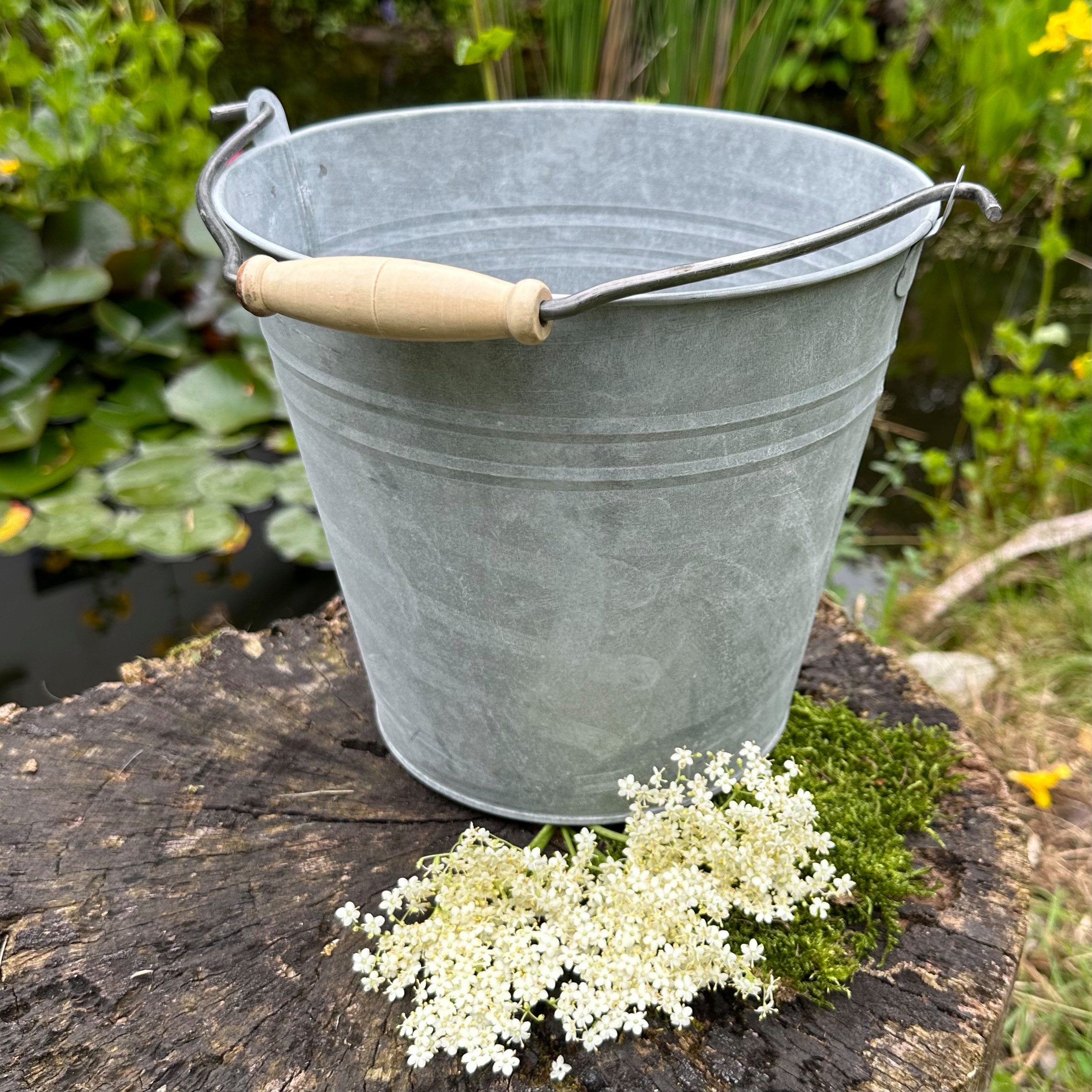 Ein absolut dekorativer Eimer, der durch seine gute Verarbeitung auch dauergenutzt werden kann. Ein praktischer Holzgriff am Eimer bietet Tragekomfort auch unter Last.