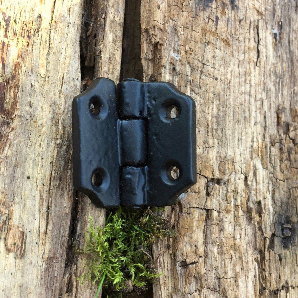 Ein kleines und wie antik gearbeitetes Klappscharnier in Eisen. Es ist gut für den Aussenbereich geeignet, denn es trägt eine schwarze Pulverbeschichtung Dieses hochwertige und äusserst stabile Scharnier ergänzt weitere Stilbeschläge perfekt.
