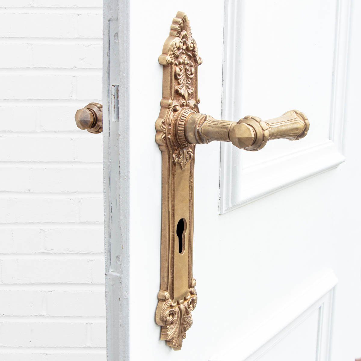 Diese Drückergarnitur sind nach einem historischen Original aus Antik-Messing gefertigt! Die Drückergarnitur sind in äußerst perfekter und qualitativ hochwertiger Ausführung! Die Beschläge wurden wie in historischer Zeit gefertigt, was sie so unglaublich authentisch wirken lässt.