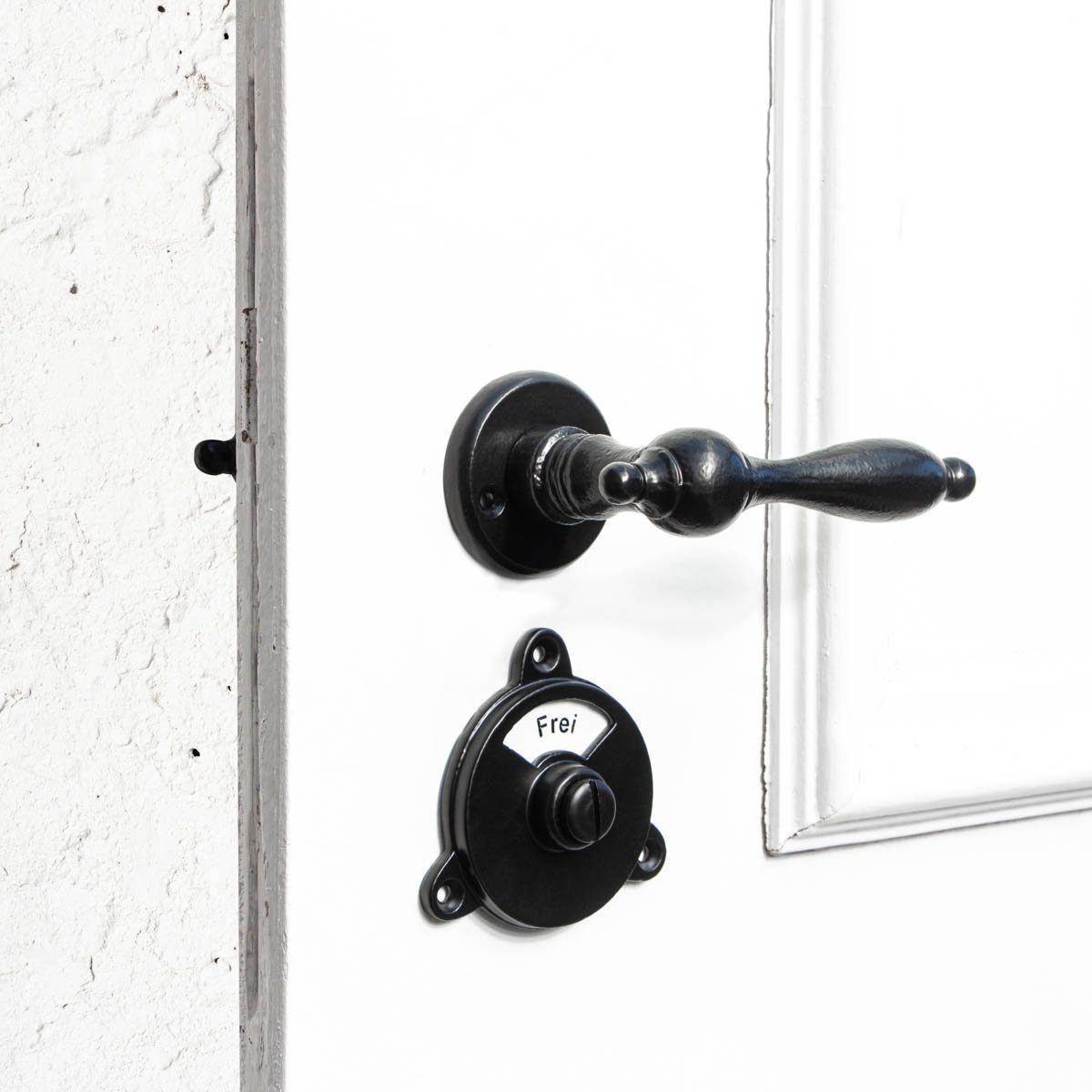 Die klassisch gestaltete BB Rosetten-Garnitur besteht aus Türklinken aus schwarzem Gusseisen und 3 schlicht gearbeiteten Rosetten. Zusätzlich liegt ein Verschluss für Ihre Badezimmer oder WC Tür dabei und ist hochwertig gearbeitet.