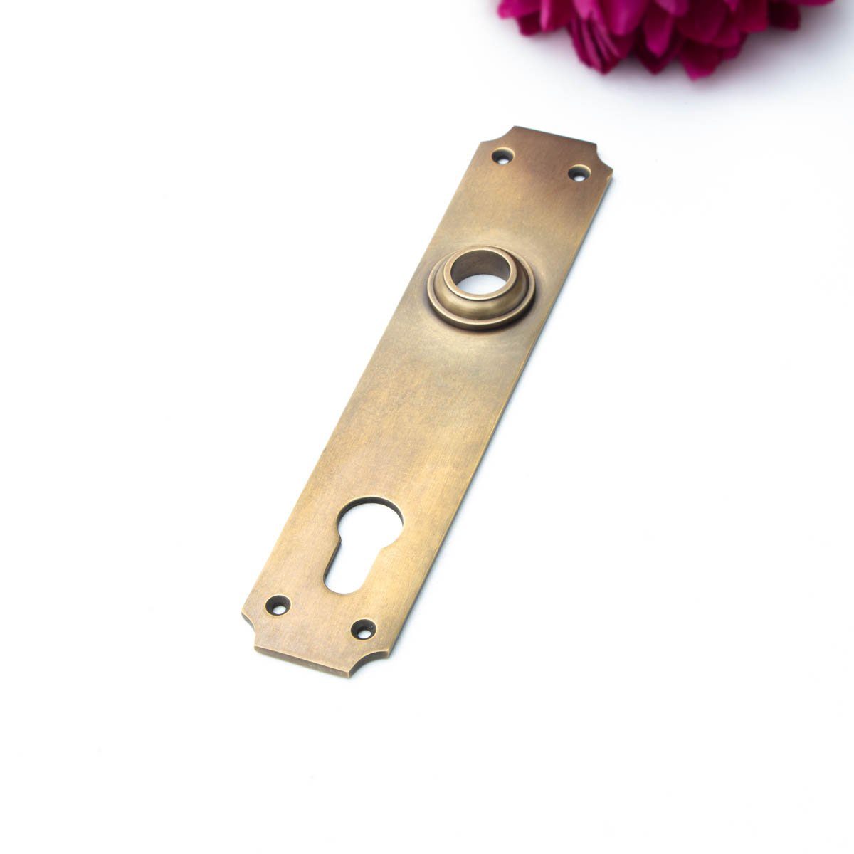 Ideal für antik gestaltete Türen und hervorragend auch als Eyecatcher an neuen Türen . Der hochwertig brünierte Messing-Beschlag macht sich bemerkenswert auf weißen Grund und wirkt wunderbar auf Naturfarben.