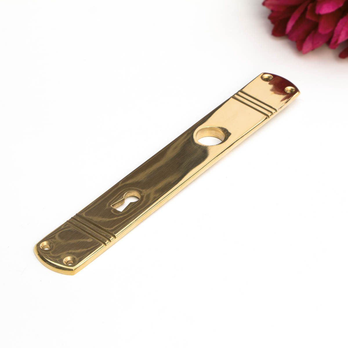 Dieses nach einer antiken Türgarnitur gefertigte Langschild hebt in historischen Gebäuden das stilvolle Ambiente und bildet bei der Restaurierung historischer Türen die ideale Vollendung im Detail.
