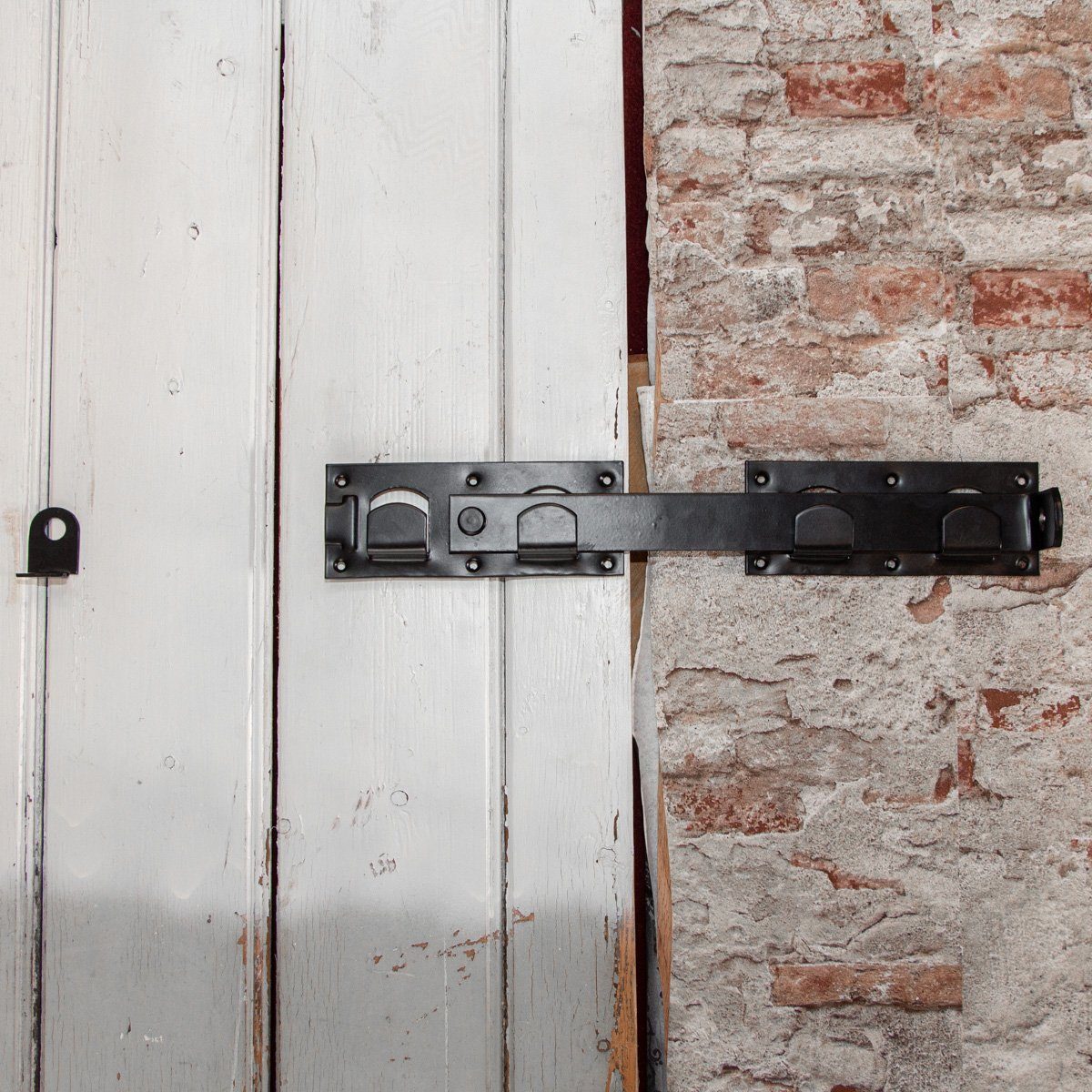 Eine äußerst hochwertige und stabile Überfalle als Verschluss für Tore. Eine auffallend schwere und besonders massive Überfalle mit Sicherung - qualitativ äußerst hochwertig und stabil. So passt sie auch gut zu antiken Türen oder Toren.
