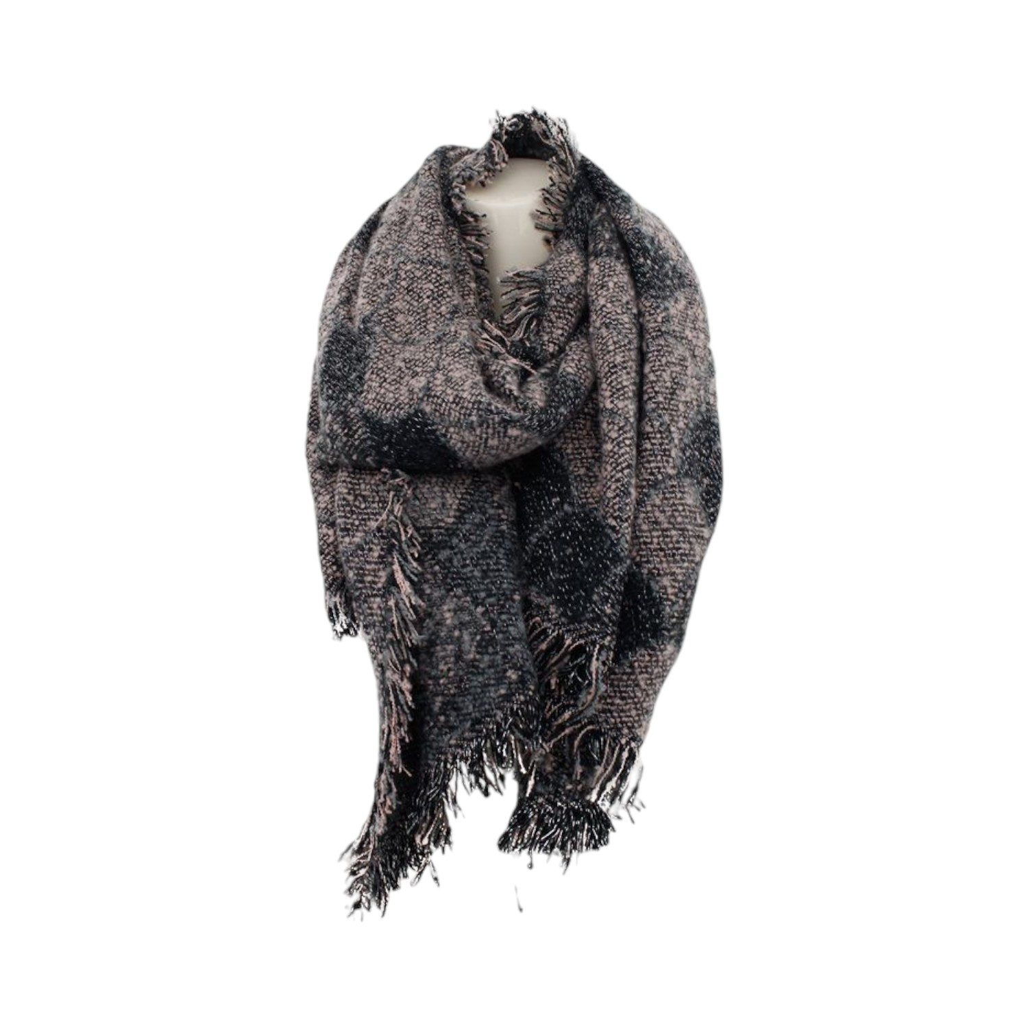 Der Schal ist in den Farben Rosa/Schwarz und Hellgrau/Schwarz erhältlich, sodass er sich perfekt in jedes Winteroutfit einfügt.