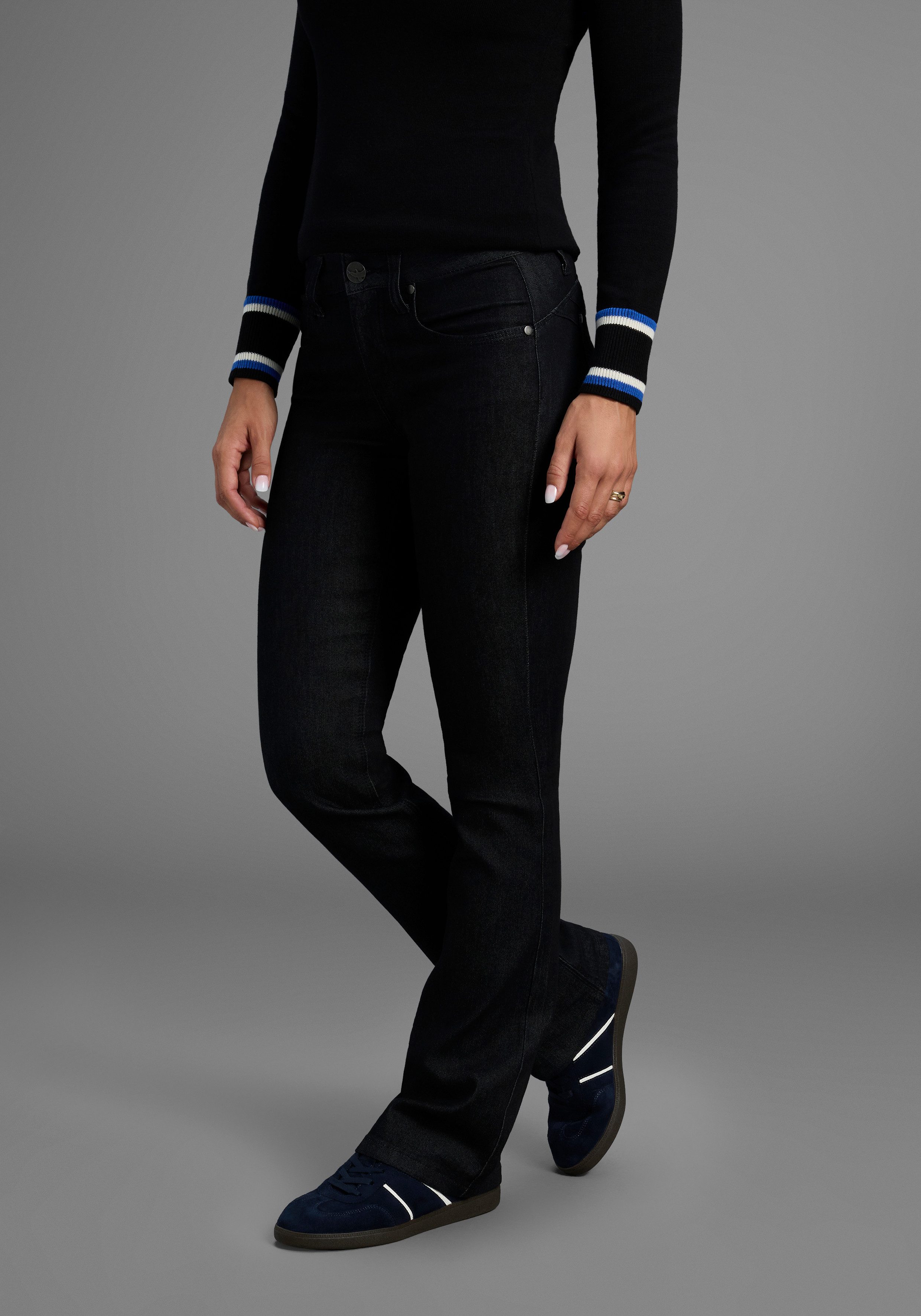 Besondere Merkmale | bootcut, Kontrastnähte, Used-Look-Waschung, niedrige Leibhöhe |