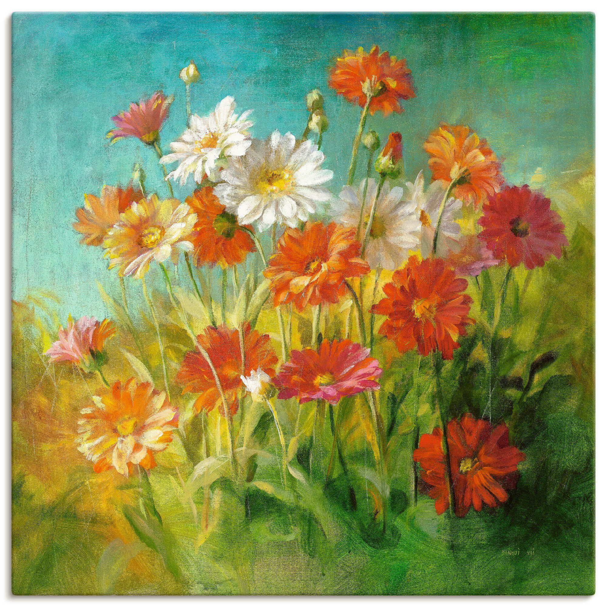 Unser mit Liebe in Handarbeit hergestelltes Leinwandbild mit dem Motiv "Gemalte Gänseblümchen" von Danhui Nai überzeugt durch originalgetreue Druckqualität und hochwertige Basismaterialien. Das Motiv wird Dir wie abgebildet und fertig zum Aufhängen nach Hause geliefert.