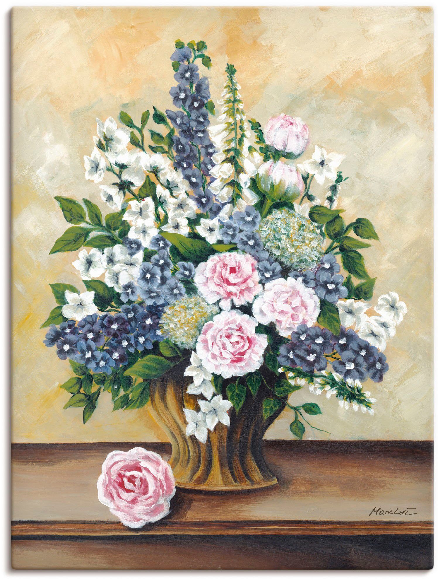 Unser mit Liebe in Handarbeit hergestelltes Wandbild mit dem Motiv Blumenstrauß I von Marie Lou überzeugt durch originalgetreue Druckqualität und hochwertige Basismaterialen. Das Motiv wird Dir wie abgebildet und fertig zum Aufhängen nach Hause geliefert.