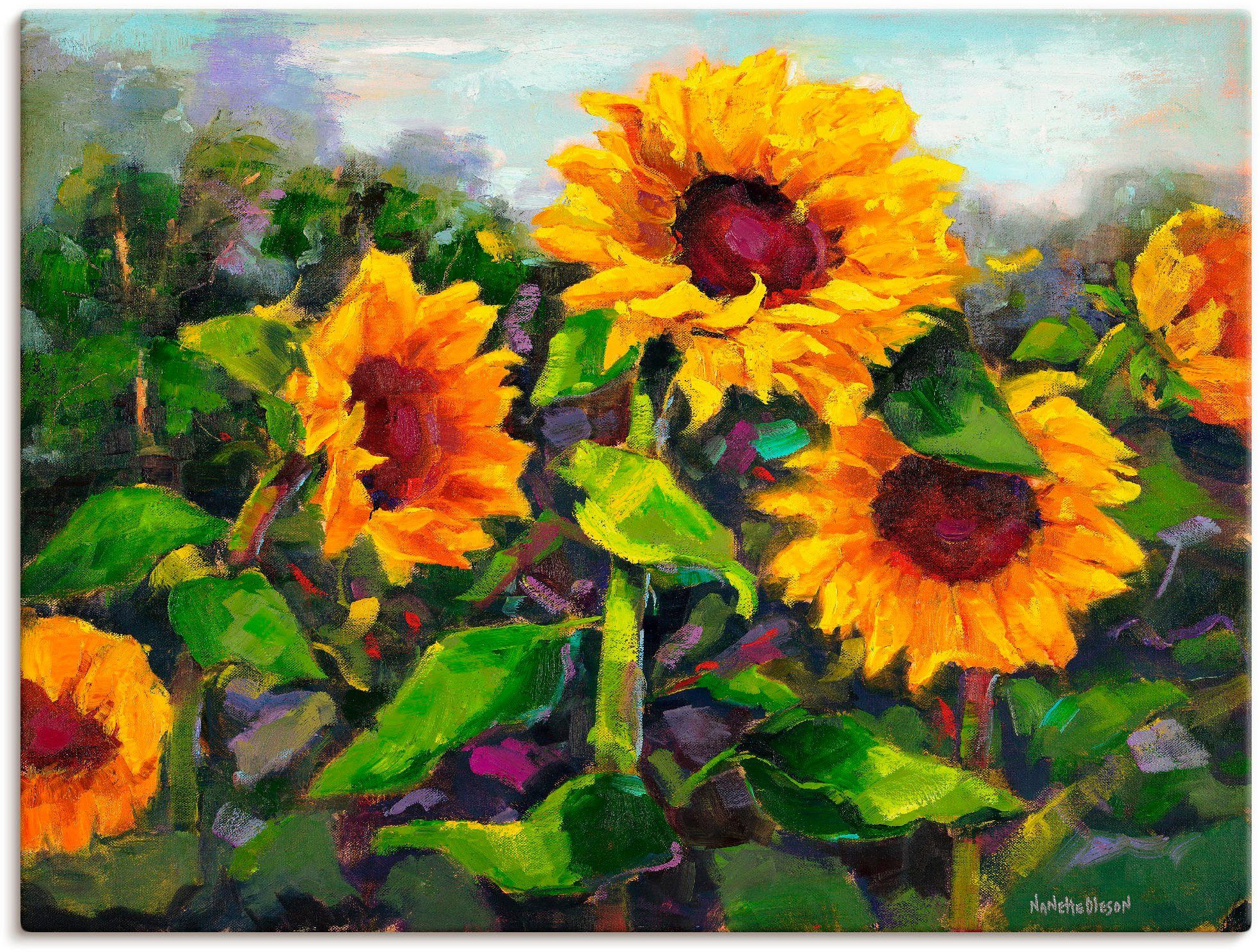 Unser mit Liebe in Handarbeit hergestelltes Wandbild mit dem Motiv Das Erwachen der Sonnenblumen IV von Nanette Oleson überzeugt durch originalgetreue Druckqualität und hochwertige Basismaterialen. Das Motiv wird Dir wie abgebildet und fertig zum Aufhängen nach Hause geliefert.