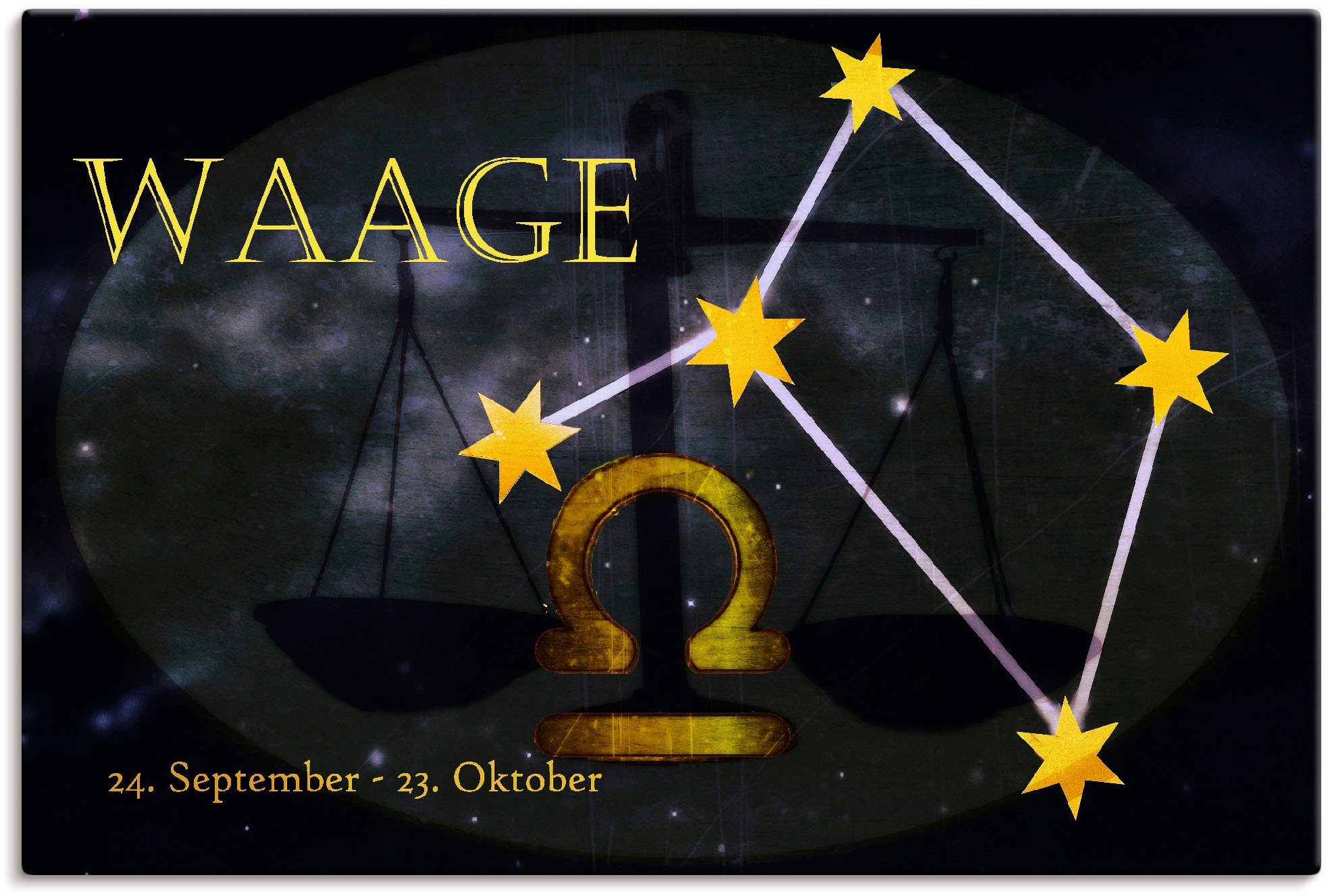 Unser mit Liebe in Handarbeit hergestelltes Wandbild mit dem Motiv Sternzeichen - Waage von Christine Nöhmeier überzeugt durch originalgetreue Druckqualität und hochwertige Basismaterialen. Das Motiv wird Dir wie abgebildet und fertig zum Aufhängen nach Hause geliefert.
