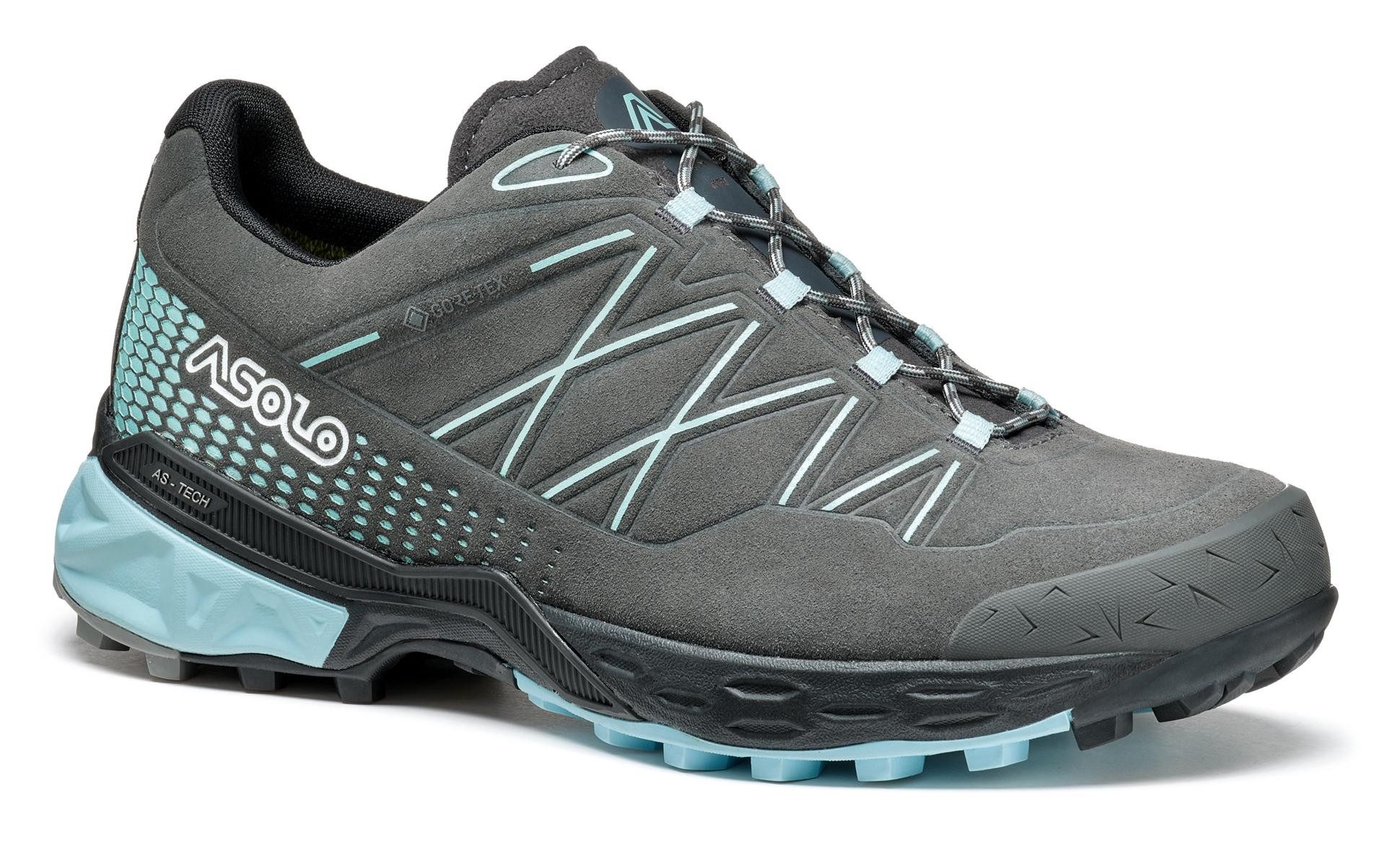 Das Obermaterial sorgt für Schutz und Komfort, während das Futter aus Gore-Tex Extended Comfort Footwear wasserdicht und atmungsaktiv ist. Die Laufsohle besteht aus einer mono density EVA Zwischensohle, die Stabilität, Halt, Komfort und Dämpfung bietet. Die AS-Tech Technologie wurde entwickelt und implementiert für Struktur und Torsionsstabilität. Die Asolo Cross Laufsohle hat ein selbstreinigendes Design und bietet, dank Sigma Grip Mischung, beste Traktion und Griffigkeit. TPU Kappe für zusätzlichen Schutz, die thermogeformte Zunge und die Bandschnürung tragen zu einer optimale Passform bei.