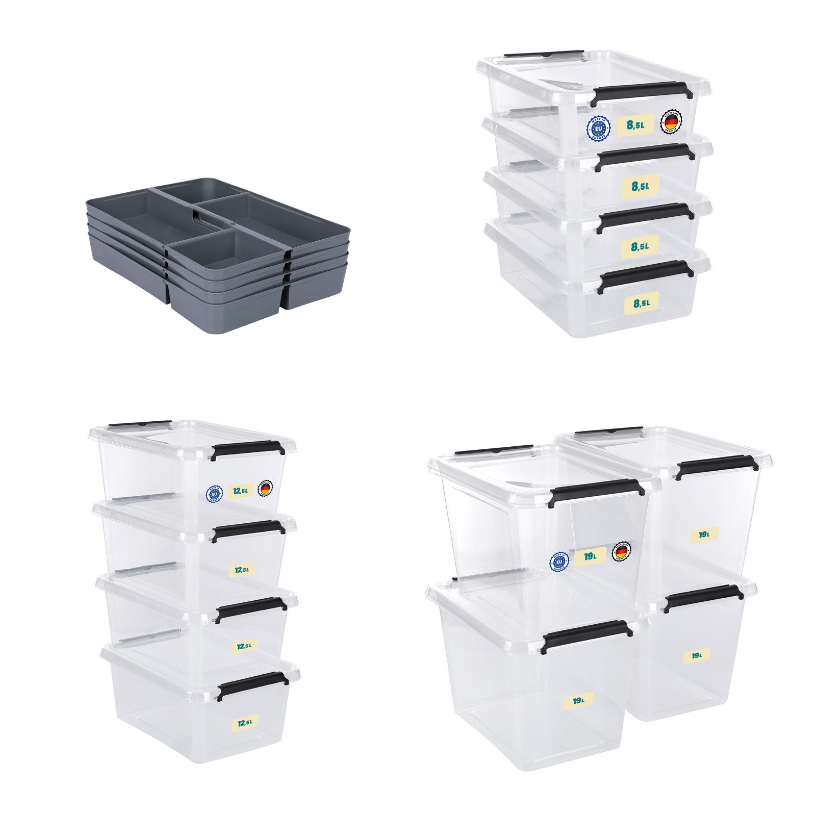 Aufbewahrungsboxen mit Deckel in 6 verschiedenen Größen im 4er Set