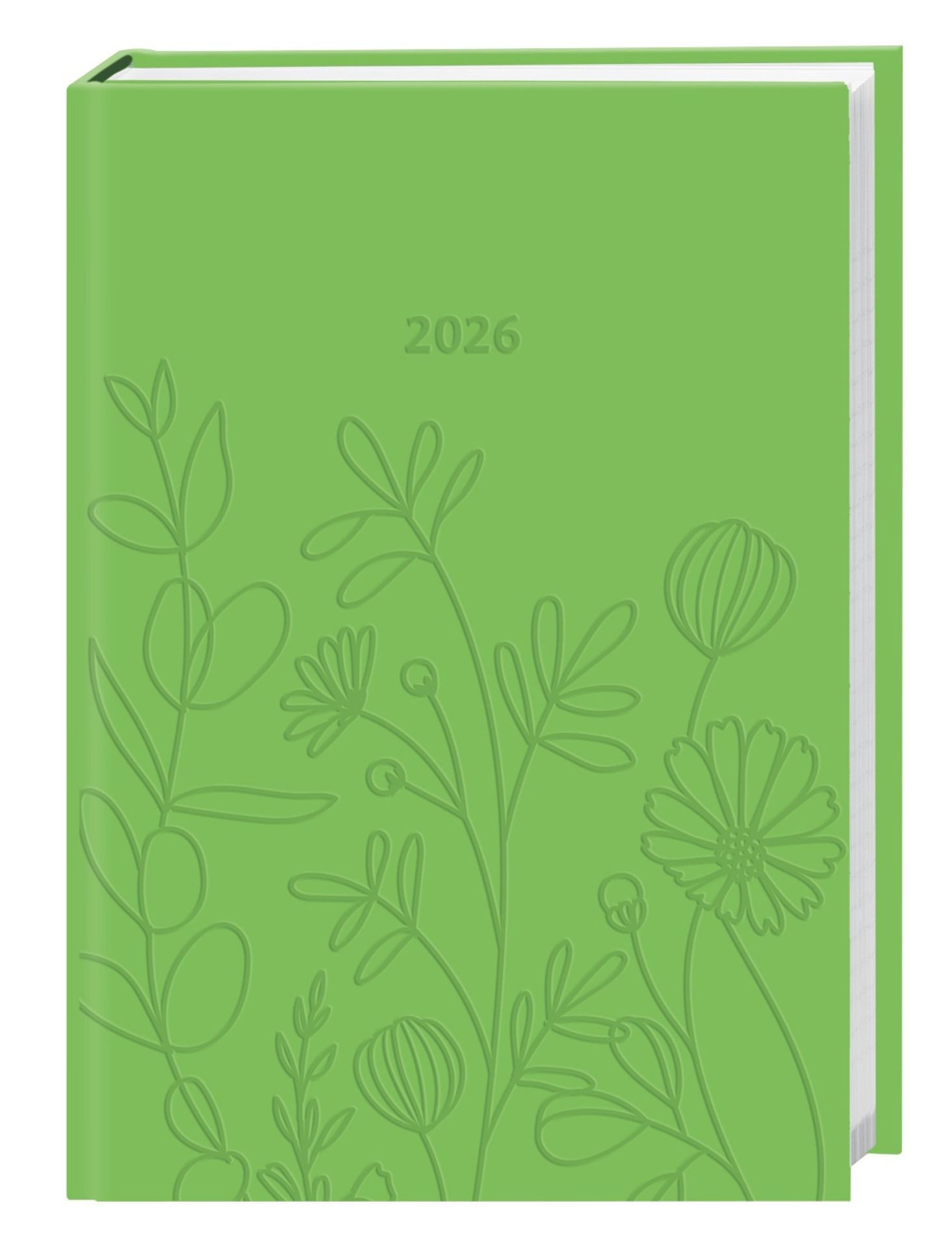 • Der inspirierende Farbspritzer im Alltag: Organizer in leuchtendem Grün mit angenehmer Haptik und Coverprägung und rundem Rücken