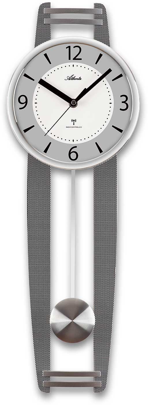 Im Inneren sorgt ein präzises Funkuhrwerk für die automatische Zeiteinstellung – ganz ohne manuelles Nachstellen. Das silberfarbene Pendel schwingt ruhig unter dem Zifferblatt und ergänzt das moderne Gesamtbild auf harmonische Weise. Mit einer Höhe von 60 cm eignet sich die Atlanta 5106/19 besonders gut für schmale Wandbereiche, wo sie Stil und Funktion gekonnt vereint.