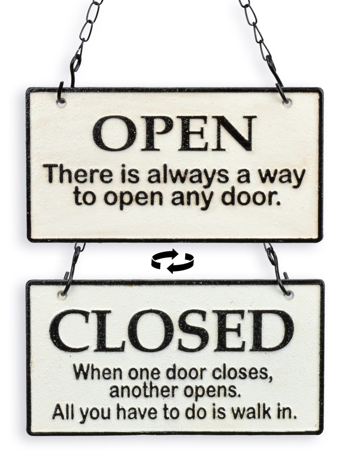 Aubaho Dekoobjekt Doppelseitiges Schild aus Gusseisen "open" und "closed" Replikat Retro