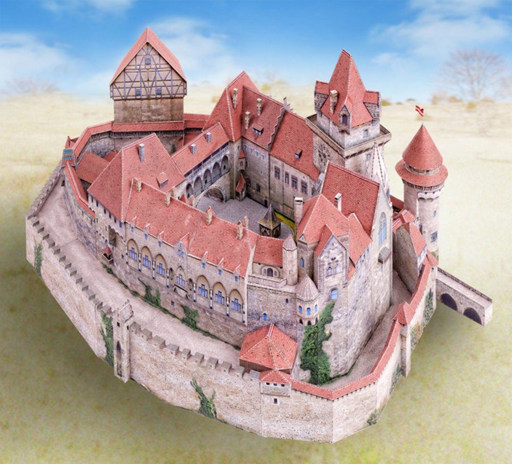 Dieser wichtige Modellbaubogen im Maßstab 1:250 ist eine detailgetreue Nachbildung der Burg Kreuzenstein.