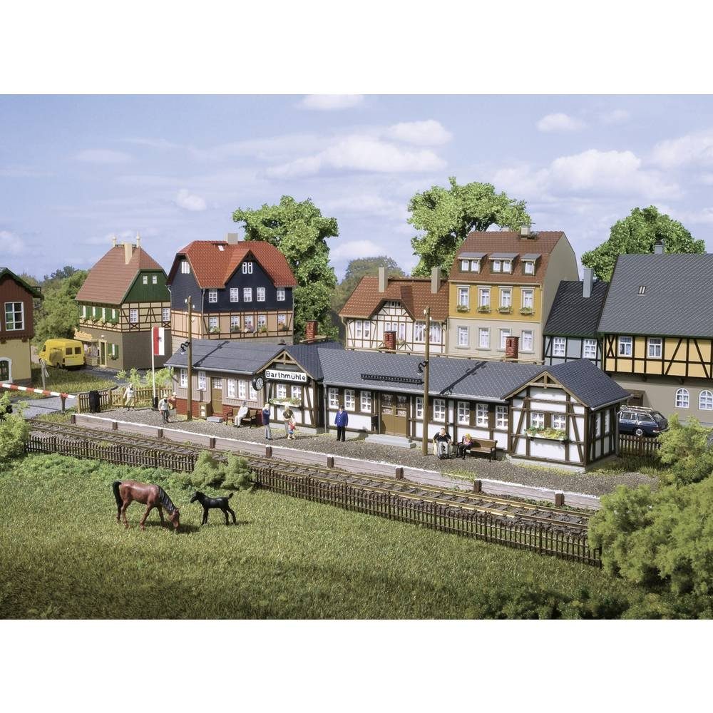 Ausstattung | Altersklasse: ab 15 Jahre · Ausführung (allgemein): Bahnhof Barthmühle · Baugröße: H0 · Epoche: II · Modellausführung (Modellbahn): Bausatz · Produktabmessung, Breite: 68 mm · Produktabmessung, Höhe: 40 mm · Produktabmessung, Довжина: 290 mm |