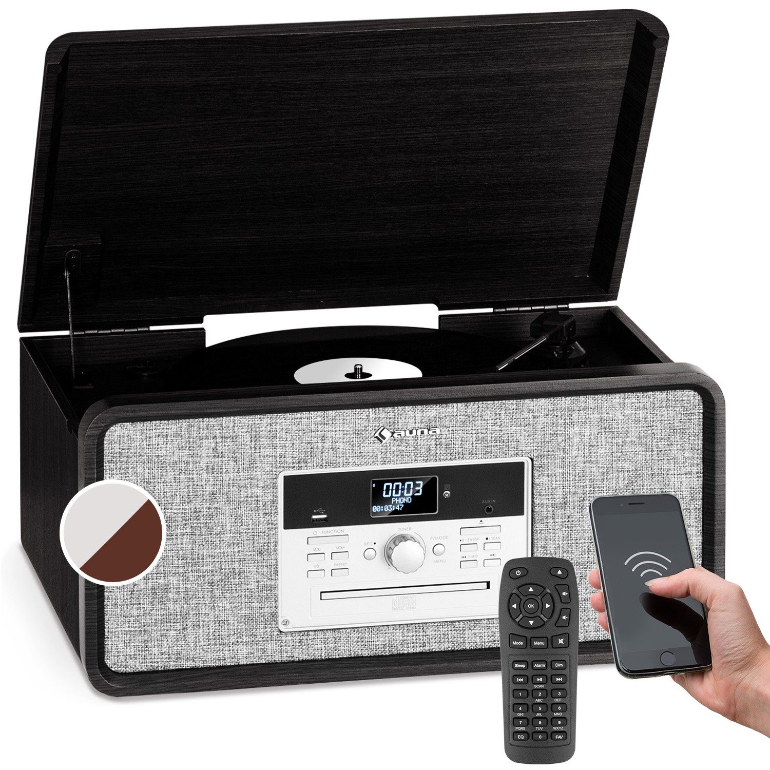 Mit dem Bella Ann Plattenspieler bist du für die gesamte Breite der Musikwiedergabe-Möglichkeiten gerüstet: Egal ob CDs, Vinyl-Platten oder MP3-Dateien via USB, die auna Kompaktanlage ist auf alle Formate vorbereitet. Damit nicht genug: Die Bluetooth-Funktion ermöglicht dir das drahtlose Streamen von Musik per Smartphone, Tablet oder PC. Das integrierte Digitalradio mit DAB+/UKW Empfang rundet das Gesamtpaket vollständig ab. Der verbaute Plattenspieler lässt die Keramik-Nadel mit wahlweise 33 ⅓, 45 oder 78 RPM über das Vinyl fliegen. Zusätzlich kann die Bella Ann 99 MP3-Titel und 20 CD-Titel zwischenspeichern, so stehen dir deine Lieblingssongs immer zur Verfügung. Mit der praktischen Aufnahme-Funktion via USB kannst du Musikstücke von deinen Schallplatten, CDs oder aus dem Radio aufnehmen und so super einfach digitalisieren. Ganz bequem vom Sofa bietet dir die mitgelieferte Fernbedienung die volle Kontrolle über alle Funktionen. Die Bella Ann Stereoanlage mit Plattenspieler von auna fügt sich durch ihr schlichtes Design nahtlos in dein Wohnambiente ein und begeistert mit ihrer Funktionsvielfalt.